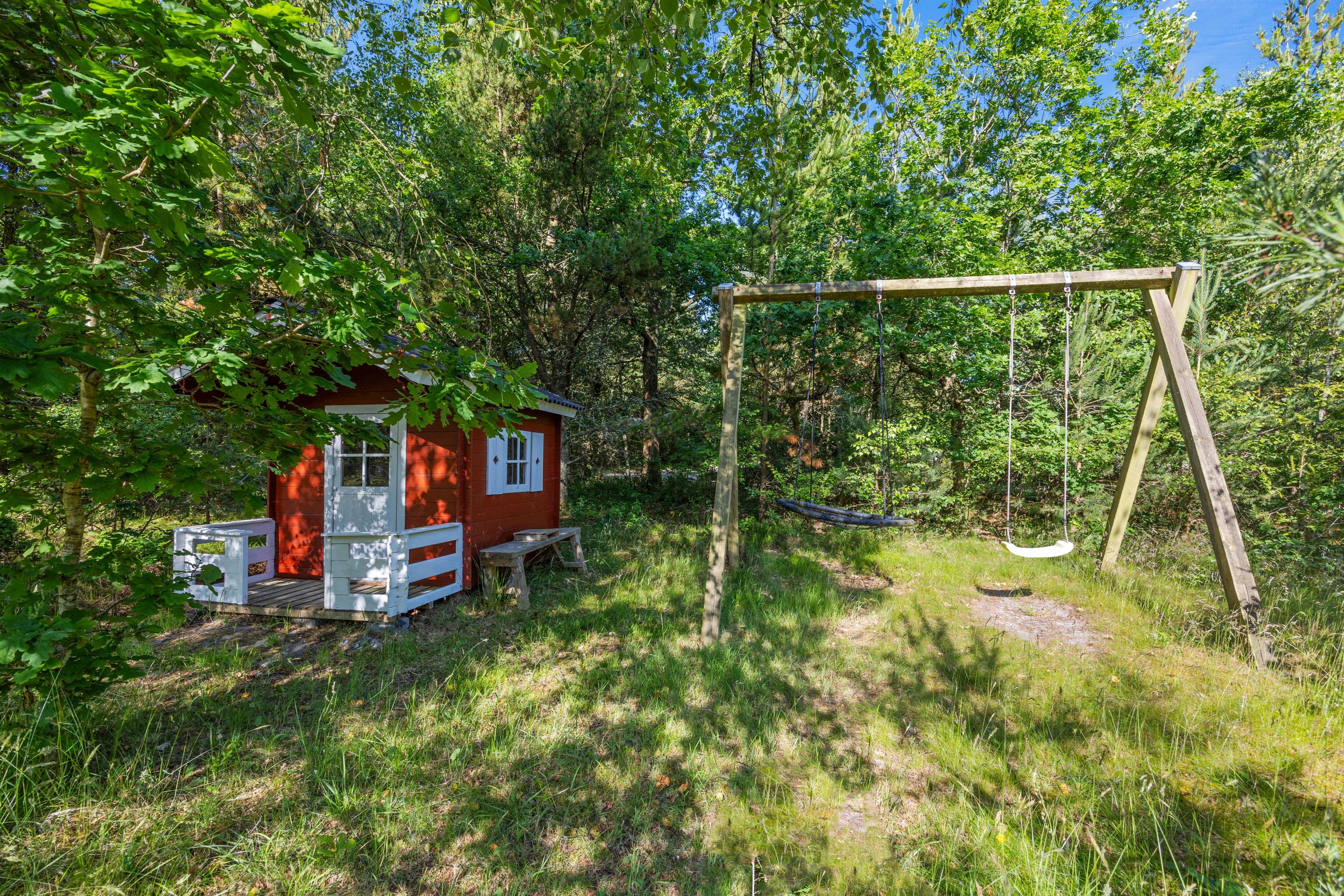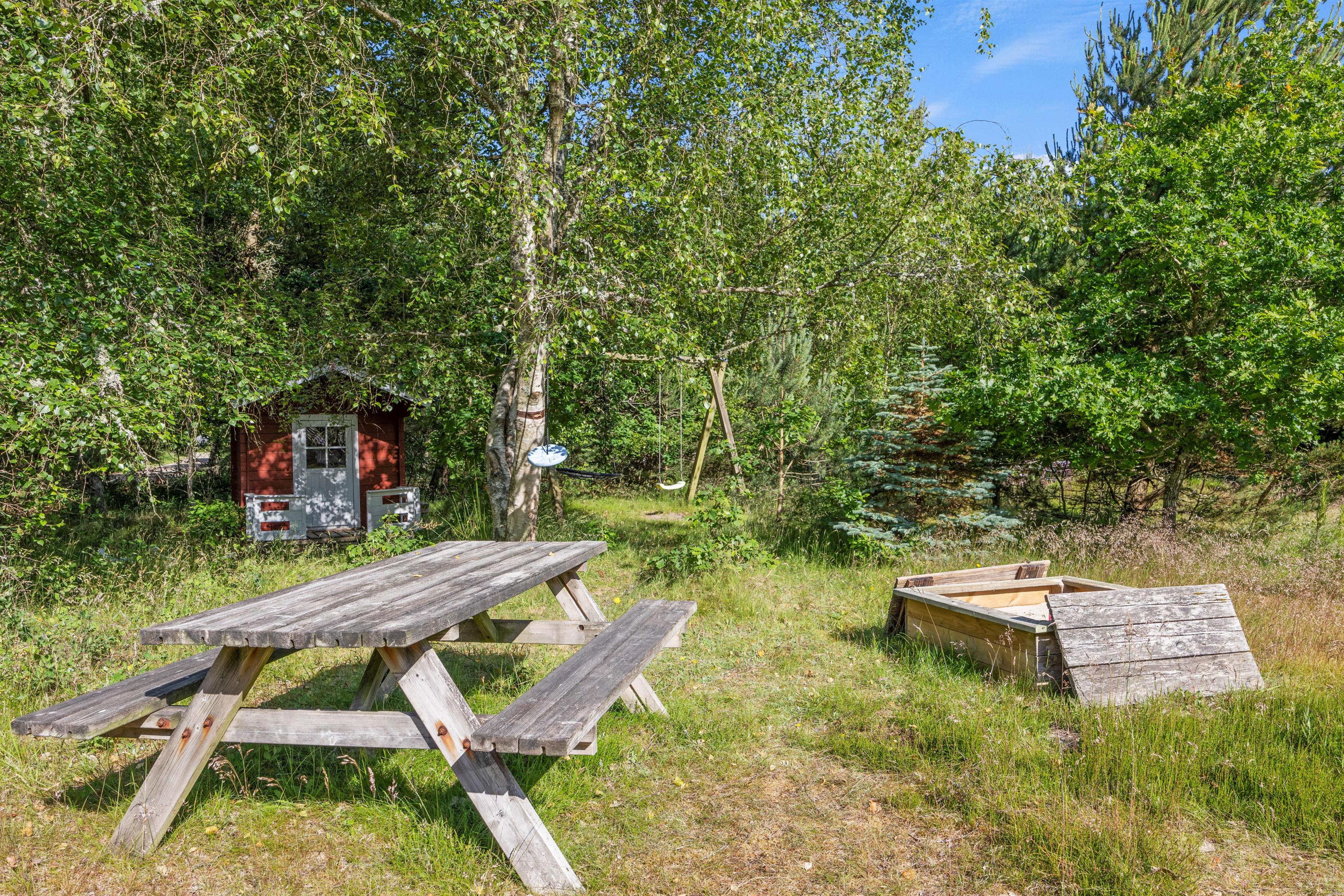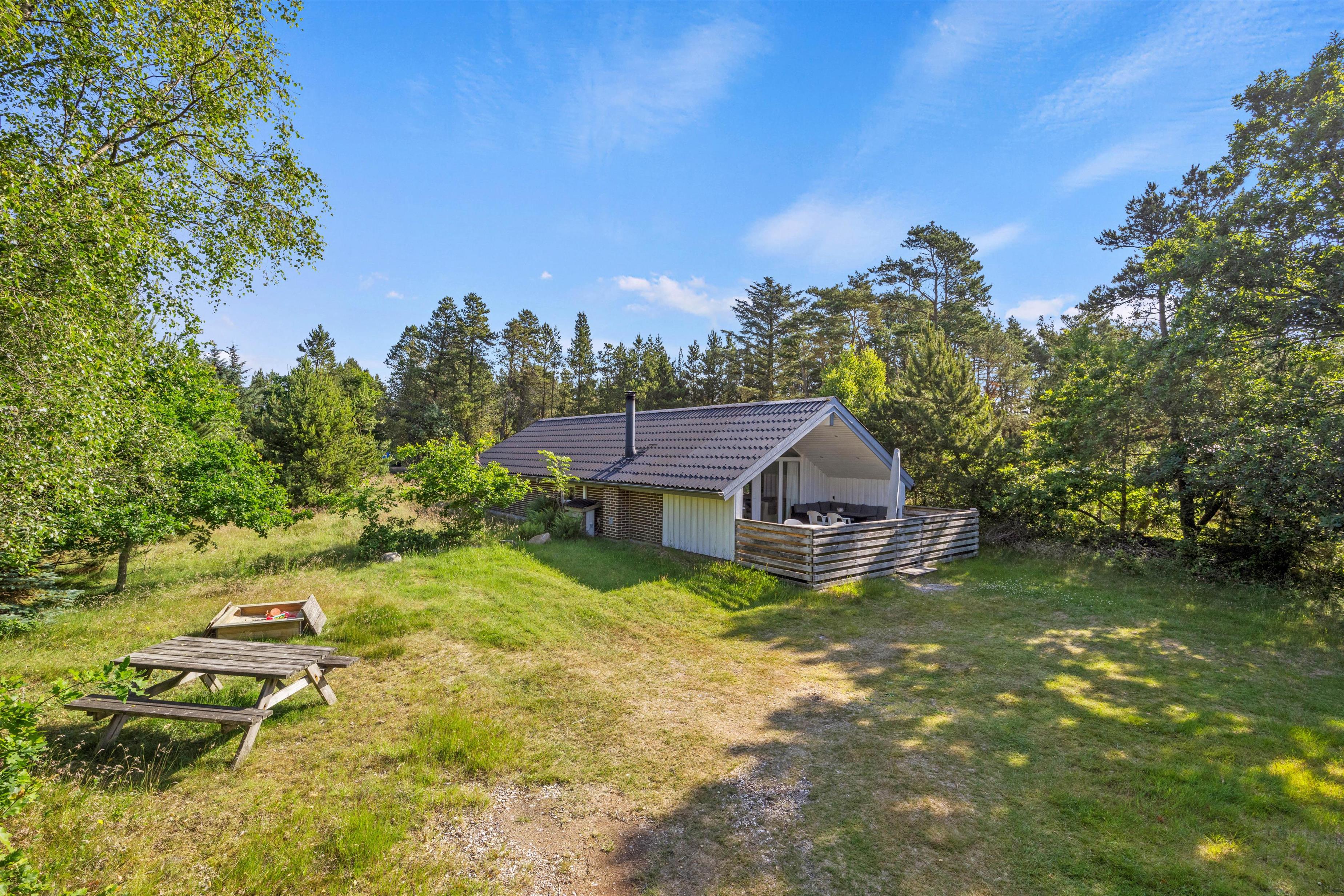 Her kan du gå dejlige ture på stranden kun knap 4 km væk eller bare nyde roen på den store 2300 m2 naturgrund.