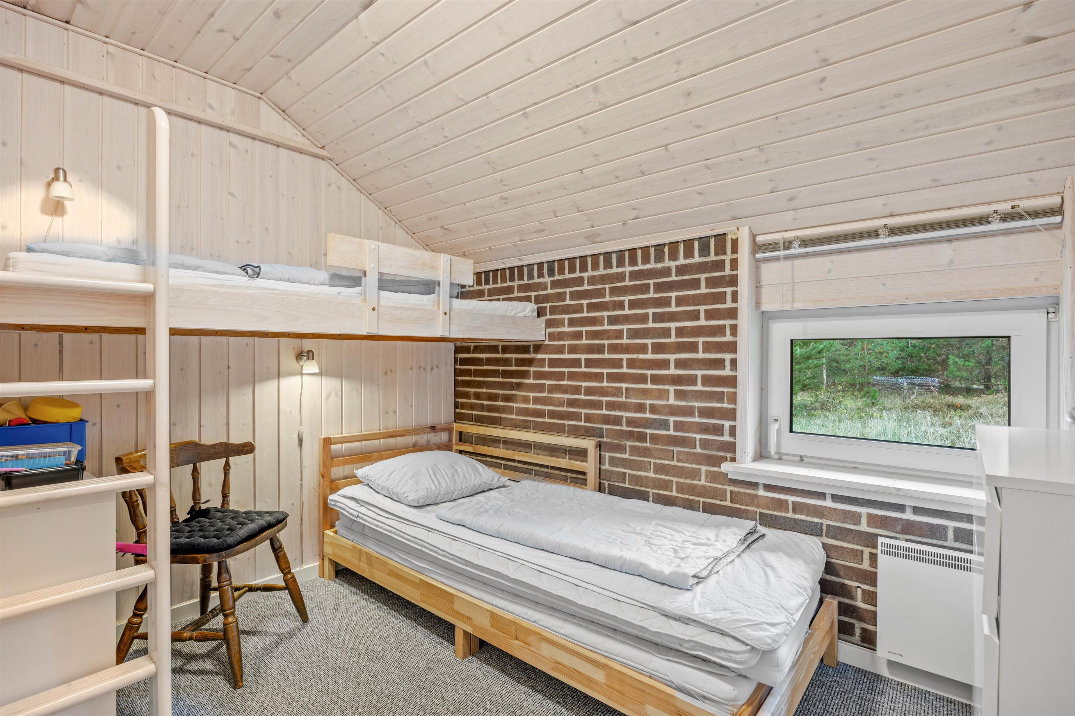 Det rustikke sommerhus i Ho har plads til op til 6 personer og er dermed egnet til familier eller mindre vennegrupper. Huset har 3 soveværelser - det ene med en enkeltseng, de 2 øvrige med dobbeltsenge, og som en ekstra fordel kan enkeltsengen trækkes ud til en dobbeltseng, så I får lidt mere soveplads.