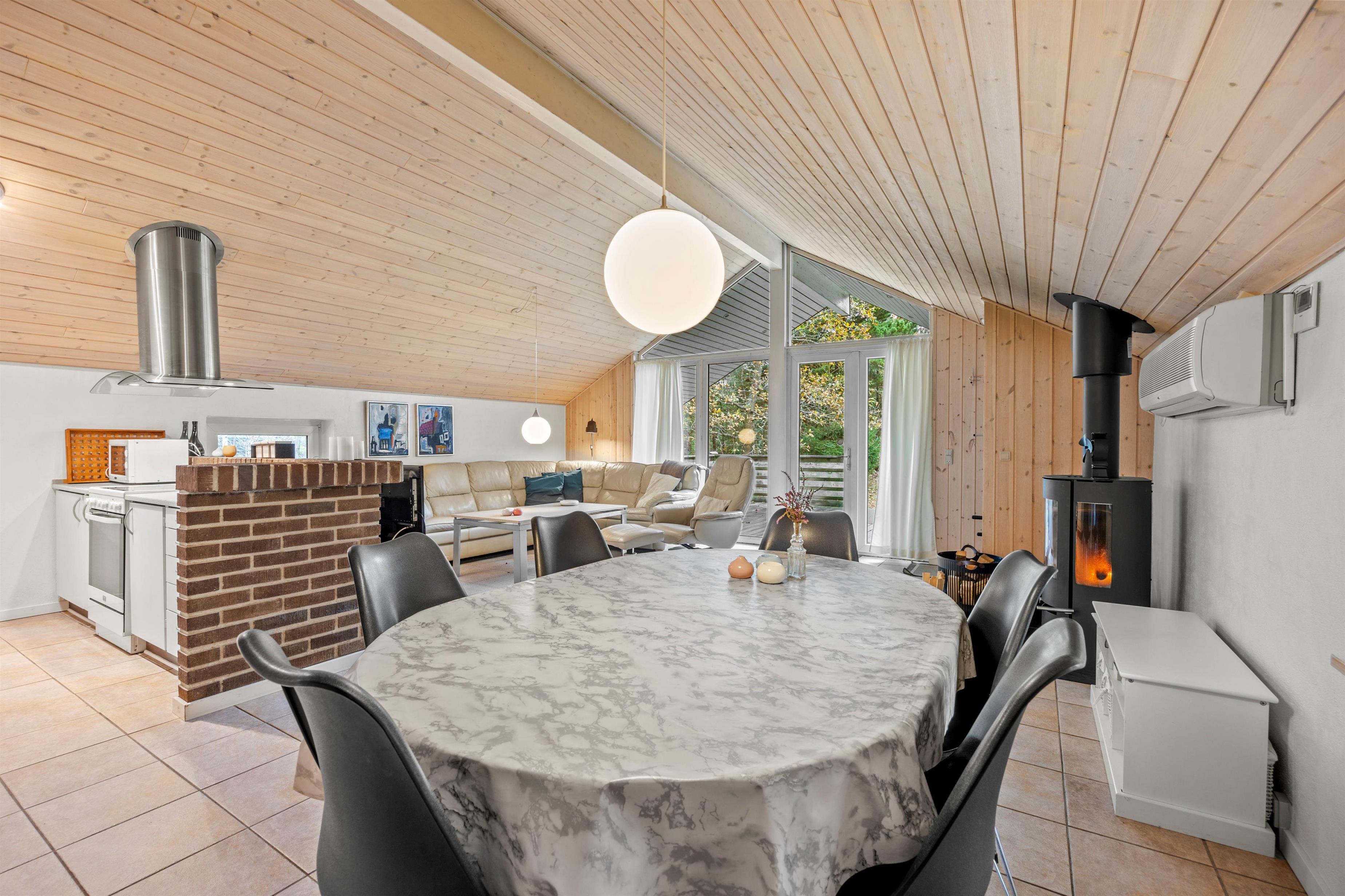 I vintersæsonen kan du gøre dig det behageligt foran brændeovnen og nyde stemningen, mens varmepumpen sørger for indeklima og energieffektivitet. Gulvvarmen i badeværelset giver dig en god start på dagen.