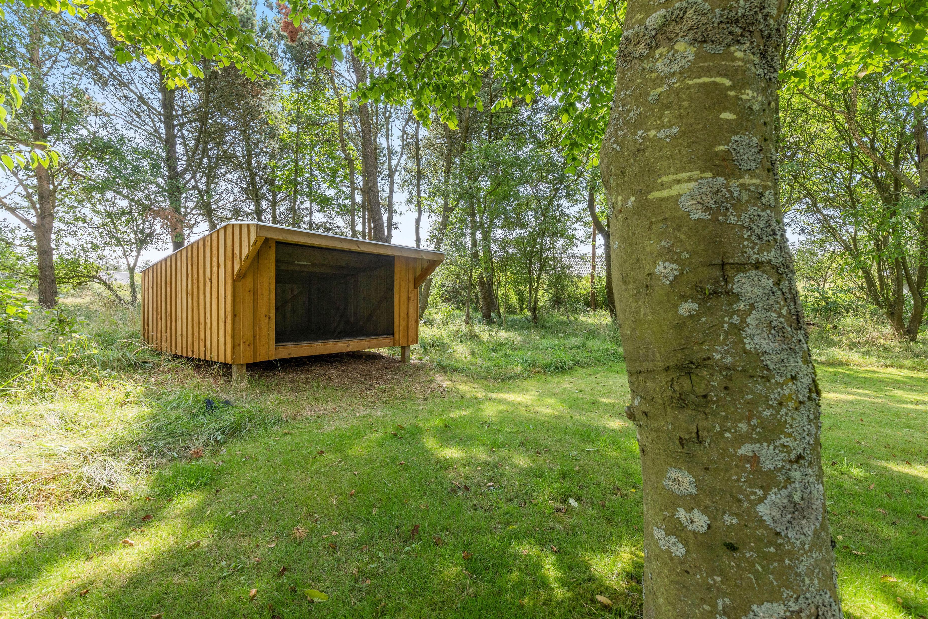 Om aftenen kan I tilberede en dejlig middag på sommerhusets grill og nyde et godt glas vin. Hvis I er friske, kan I overnatte i shelteret i haven.