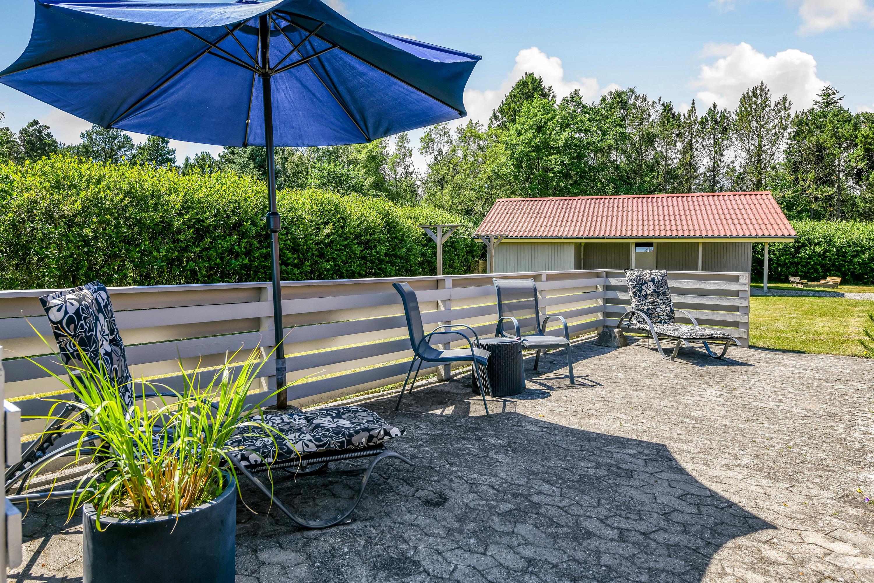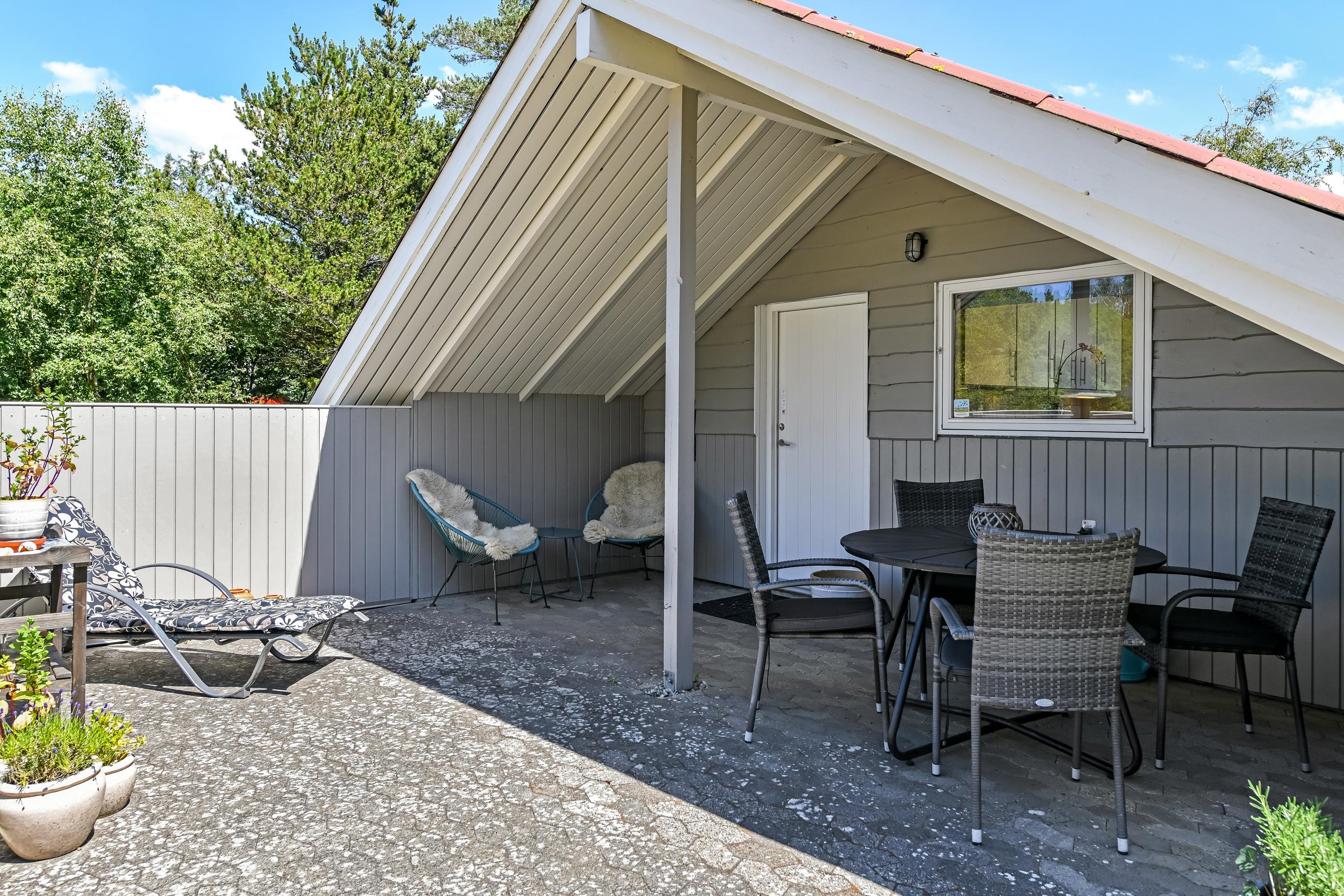 Træd fra stuen ud på den delvist overdækkede terrasse og find et godt spot i solen. Læn jer tilbage i liggestole og havemøbler og nyd jeres ferie udendørs. Mens I holder en velfortjent pause på terrassen, kan børnene lege i haven, hvor der står både sandkasse og gyngestativ klar til dem. Om aftenen kan I lave lækker mad på grillen og slutte feriedagene af på bedste vis.