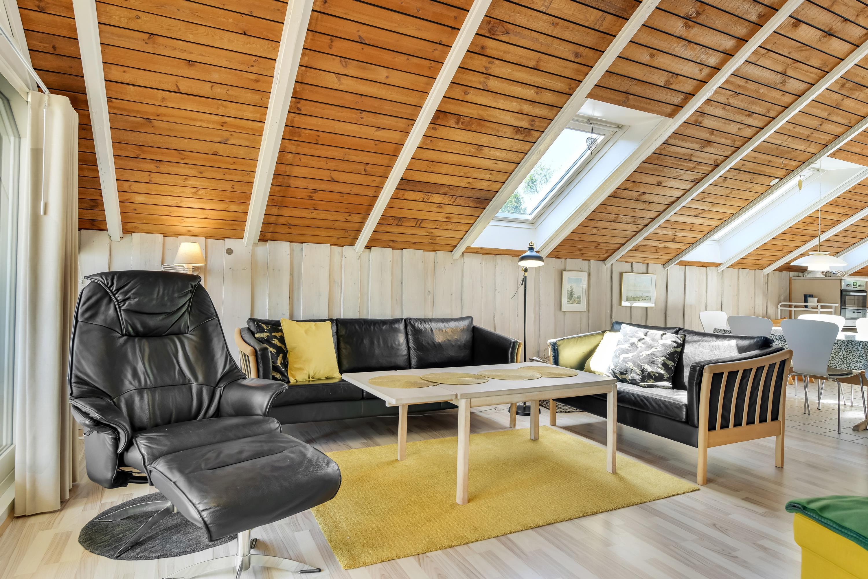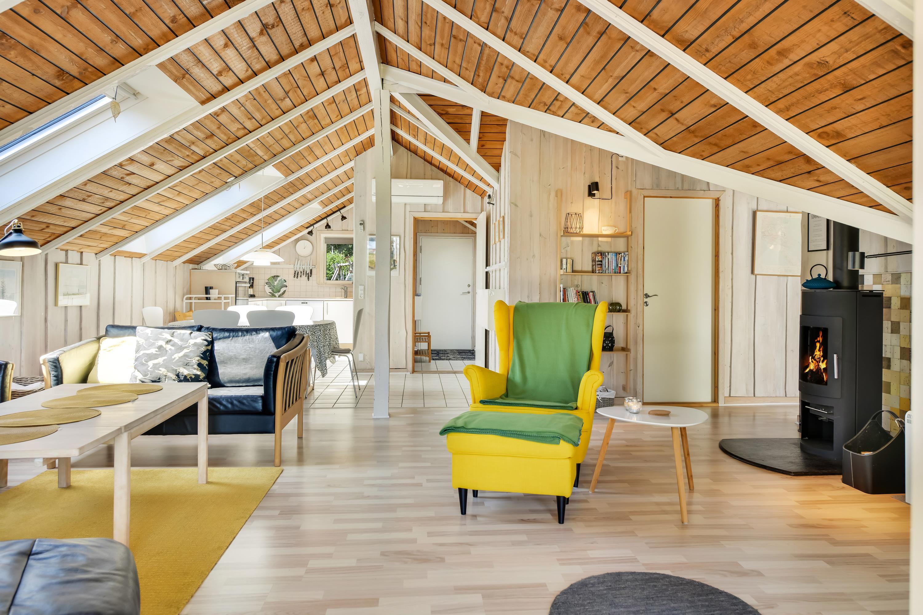 Sommerhuset har en hyggelig indretning med gode, komfortable møbler. Det skønne lysindfald fra ovenlysvinduerne skaber en lys og dejlig atmosfære, som I helt sikkert vil føle jer godt tilpas i under jeres ferie.