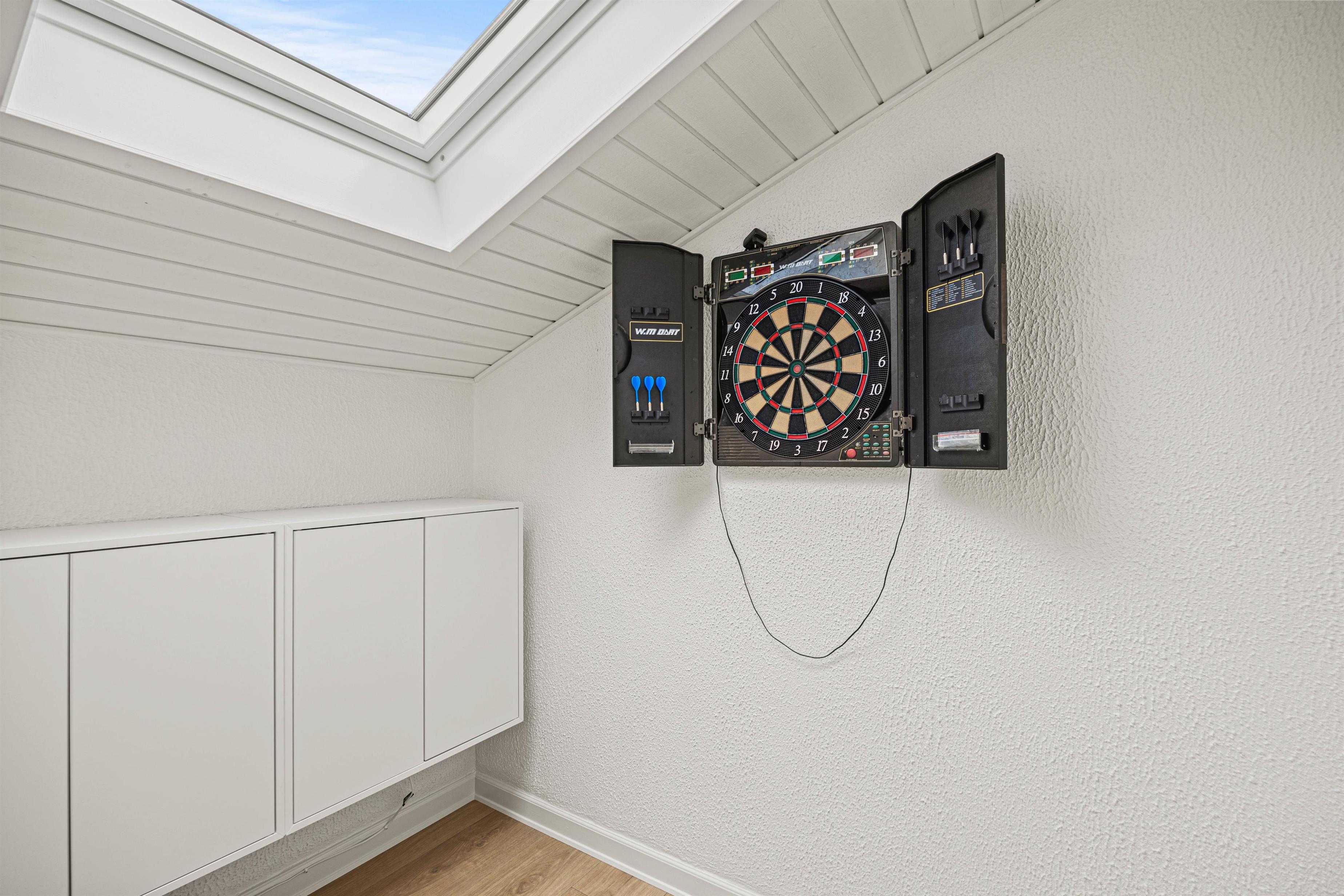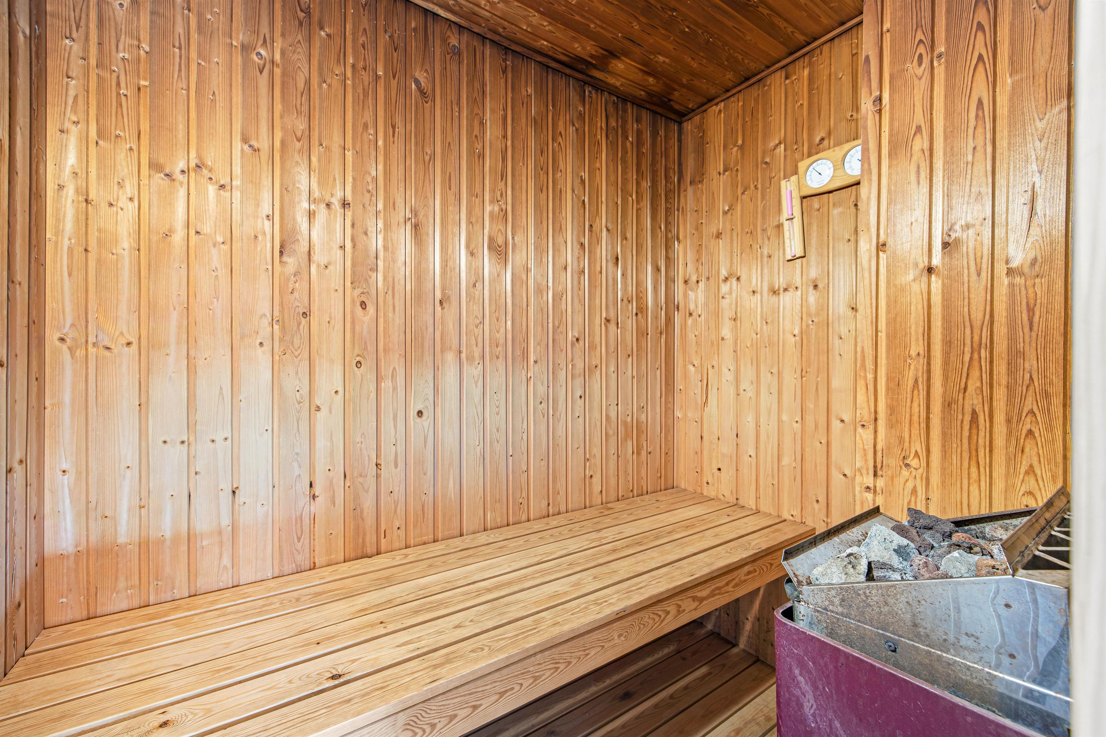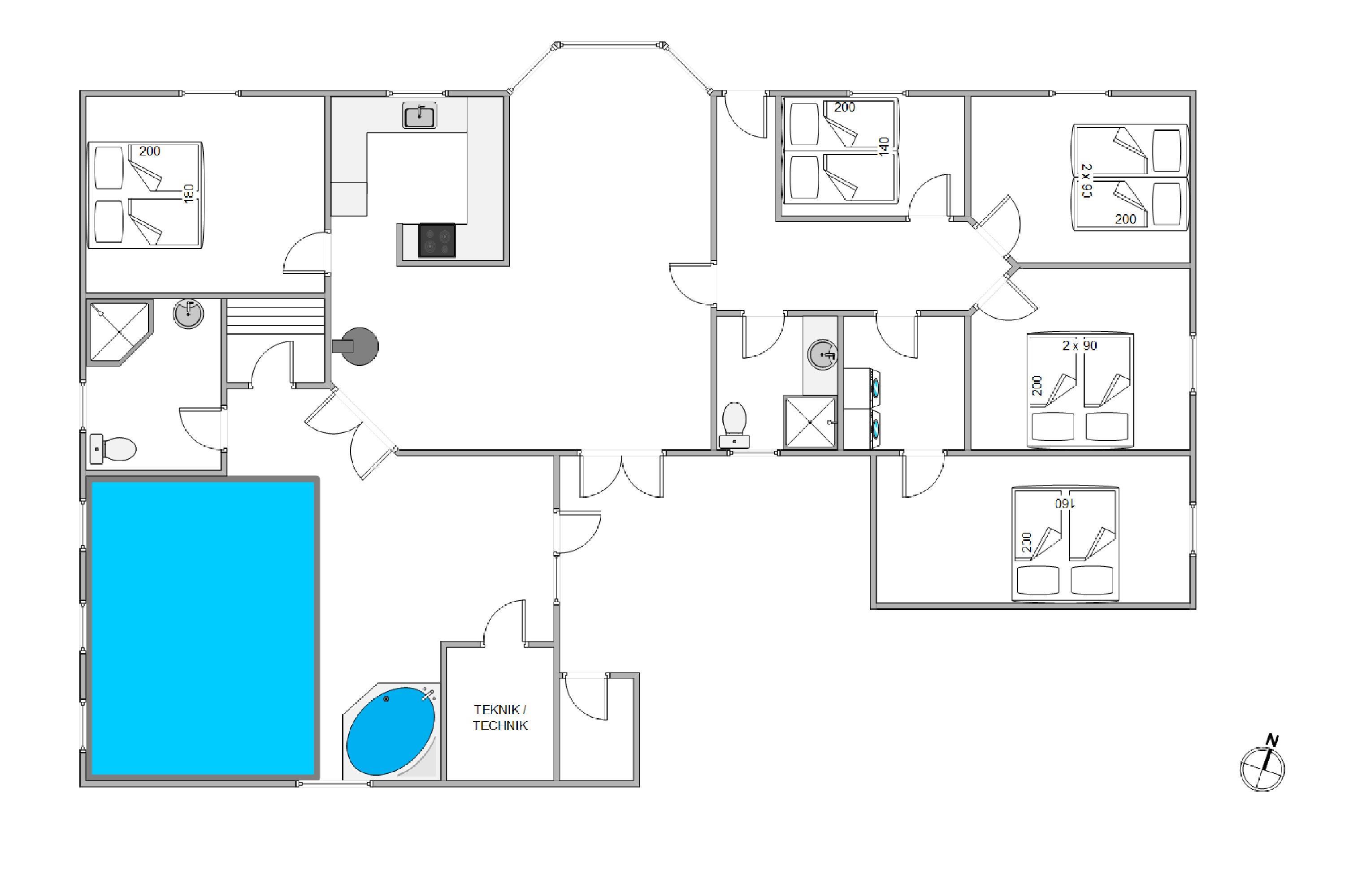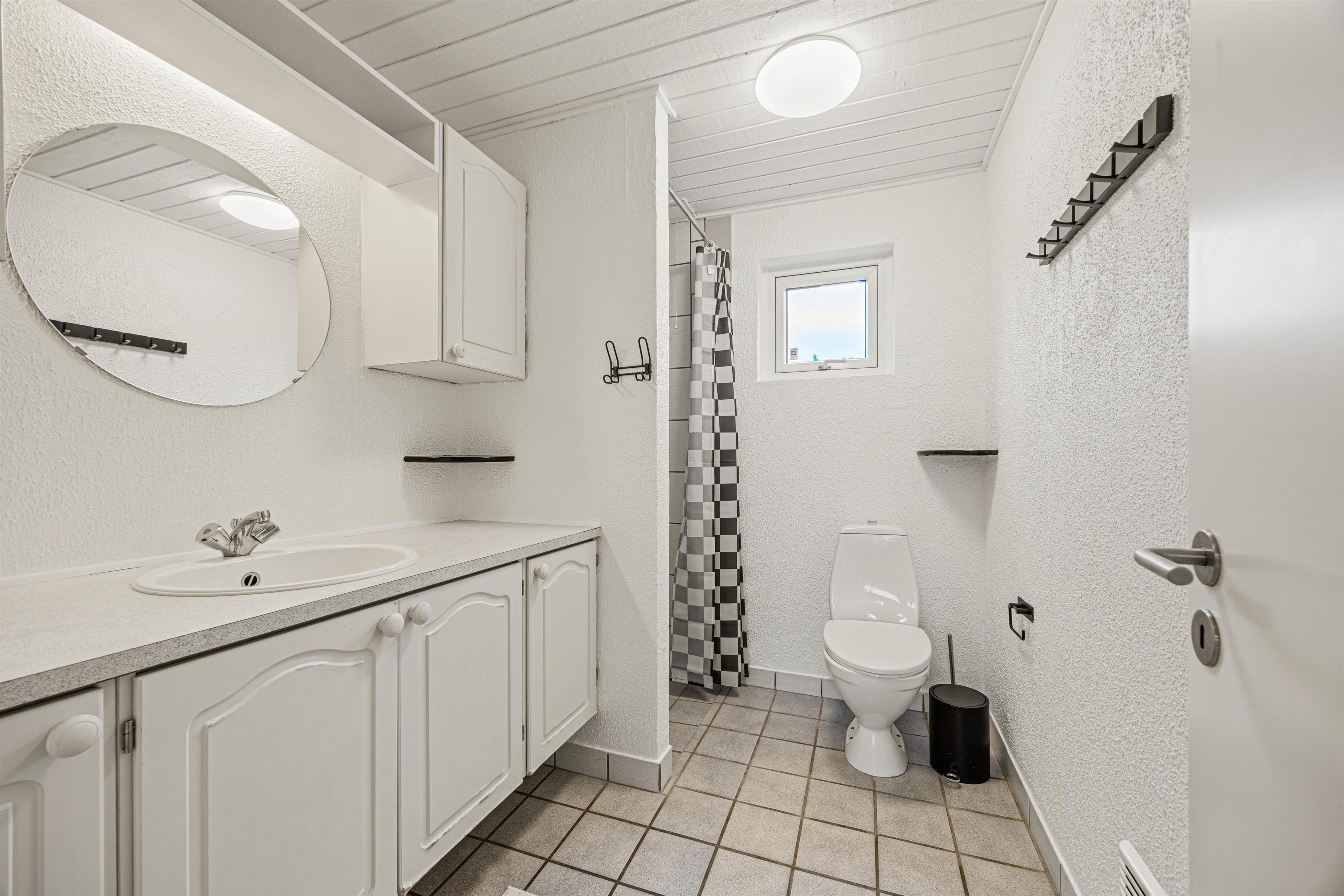 Sommerhusets absolutte highlight er poolrummet, hvor hele familien kan hygge sig i løbet af ferien. Her er der en 18 m² stor pool til sjov og leg samt et spabad og sauna til afslapning. I forlængelse heraf finder I det ene af sommerhusets i alt 2 badeværelser. Der er gulvvarme på dem begge, så I ikke kommer til at fryse om fødderne. Som et ekstra plus er der både vaskemaskine og tørretumbler i feriehuset, så I kan vaske lidt håndklæder undervejs.