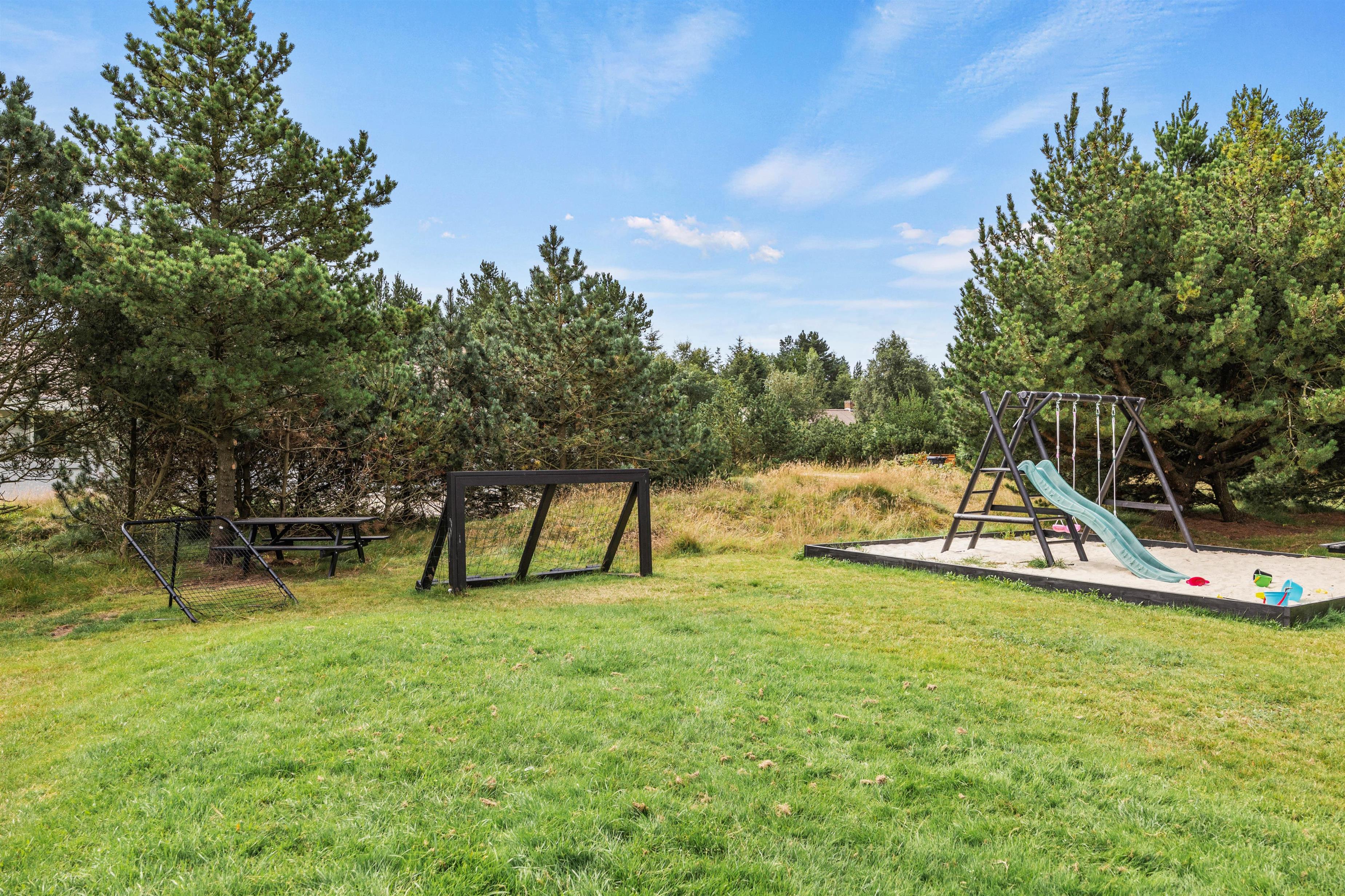 Plænegrunden er særdeles børnevenlig med god plads til leg, og der er både gyngestativ og sandkasse til de yngste. I har mulighed for at oplade elbilen direkte ved sommerhusets ladestik.