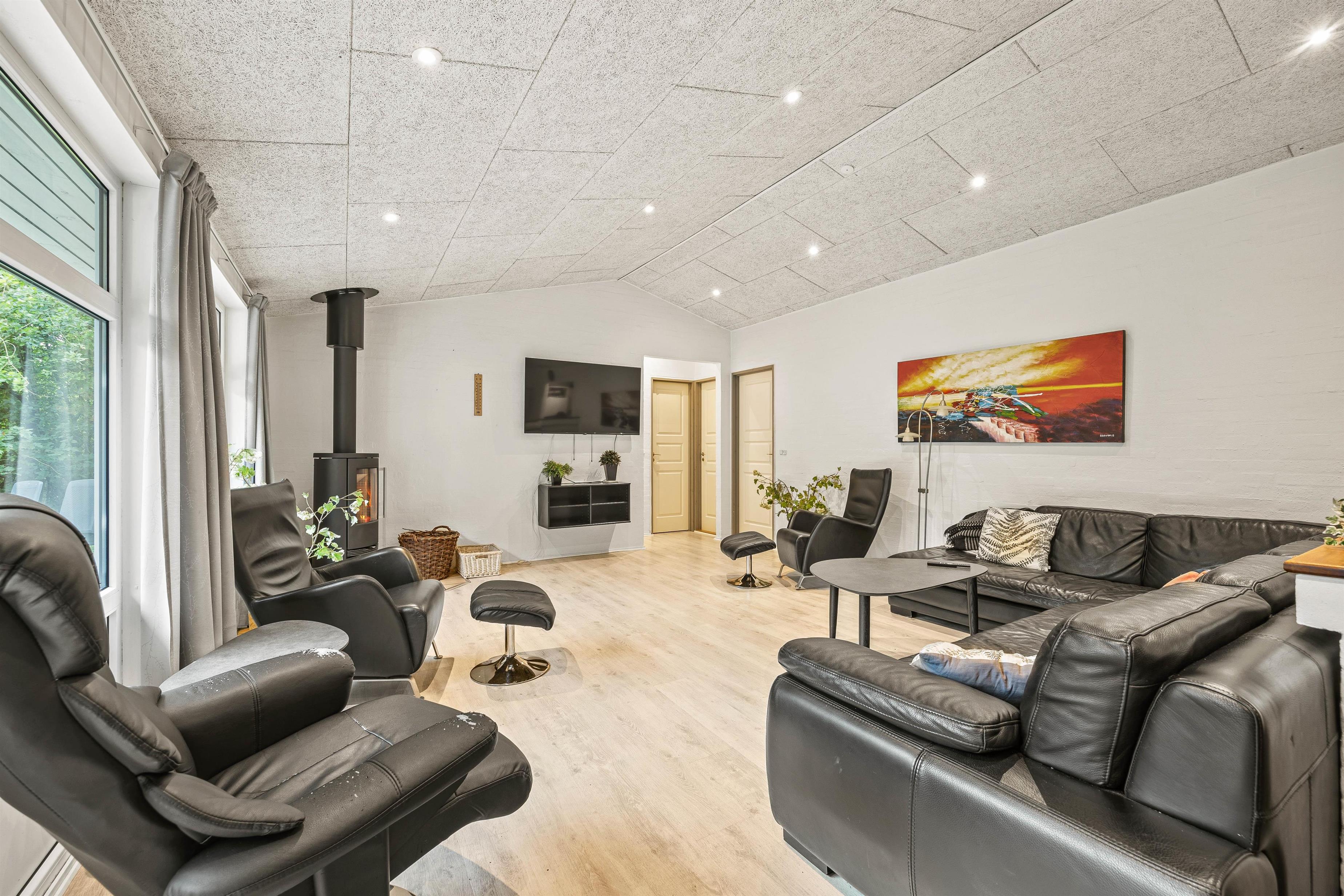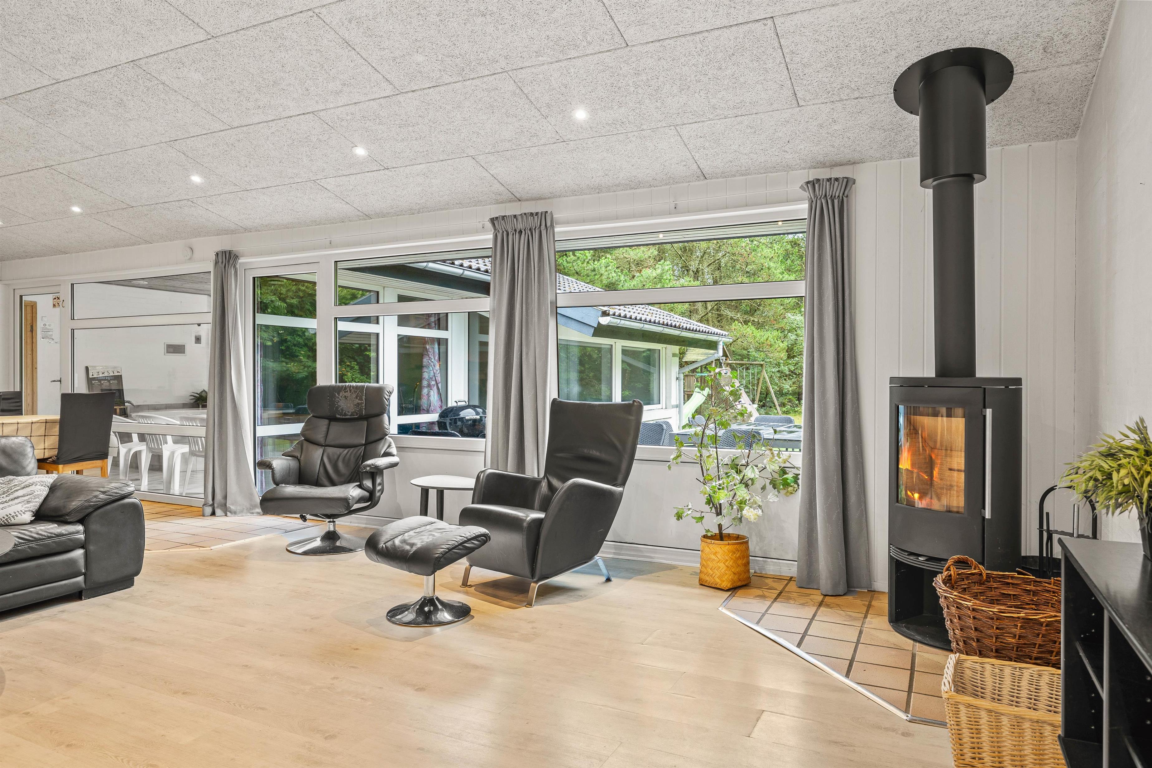 Hjerterummet er det rummelige opholdsrum, der forbinder stue og køkken. Her kan I tilberede dejlige retter, holde spilleaftner eller se film sammen i sofaen. Tænd op i brændeovnen, mærk varmen brede sig og hvil ud på sofaen efter en dejlig dag med sjov, spas og vandlege.