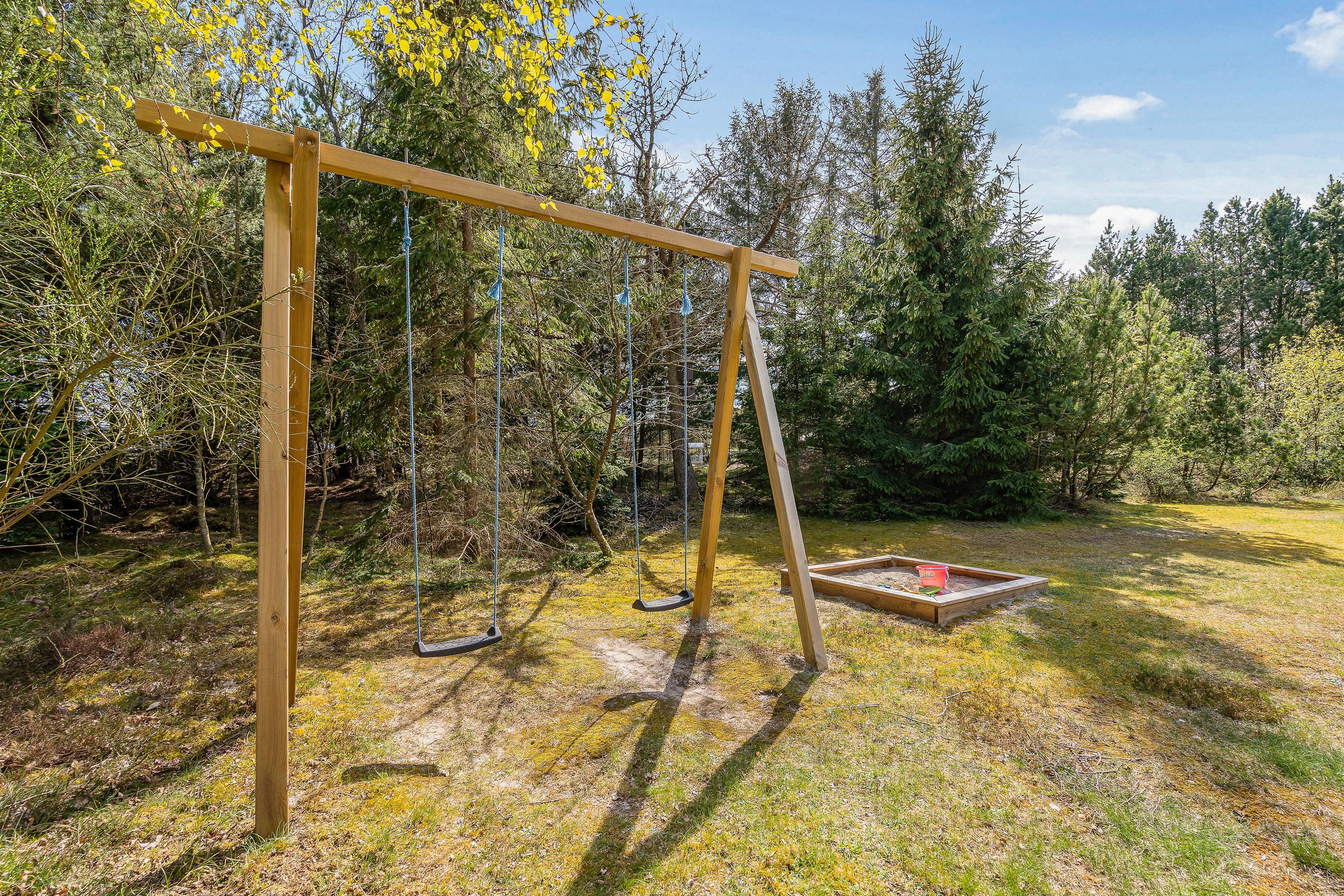 Mens I slapper af på terrassen, kan børnene lege i haven, hvor der både står et gyngestativ og en sandkasse klar til dem. Til aften kan I samles på terrassen til en lækker middag på sommerhusets gasgrill.