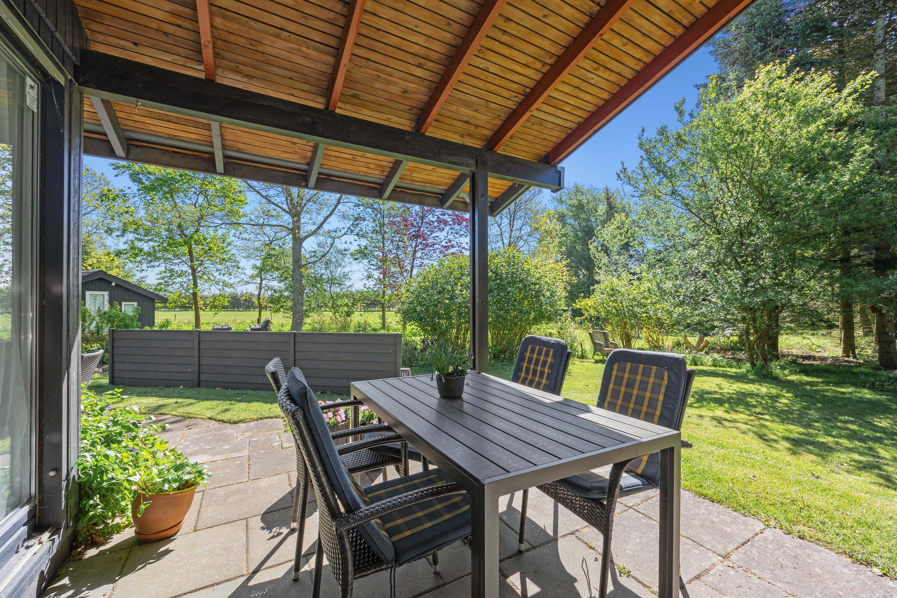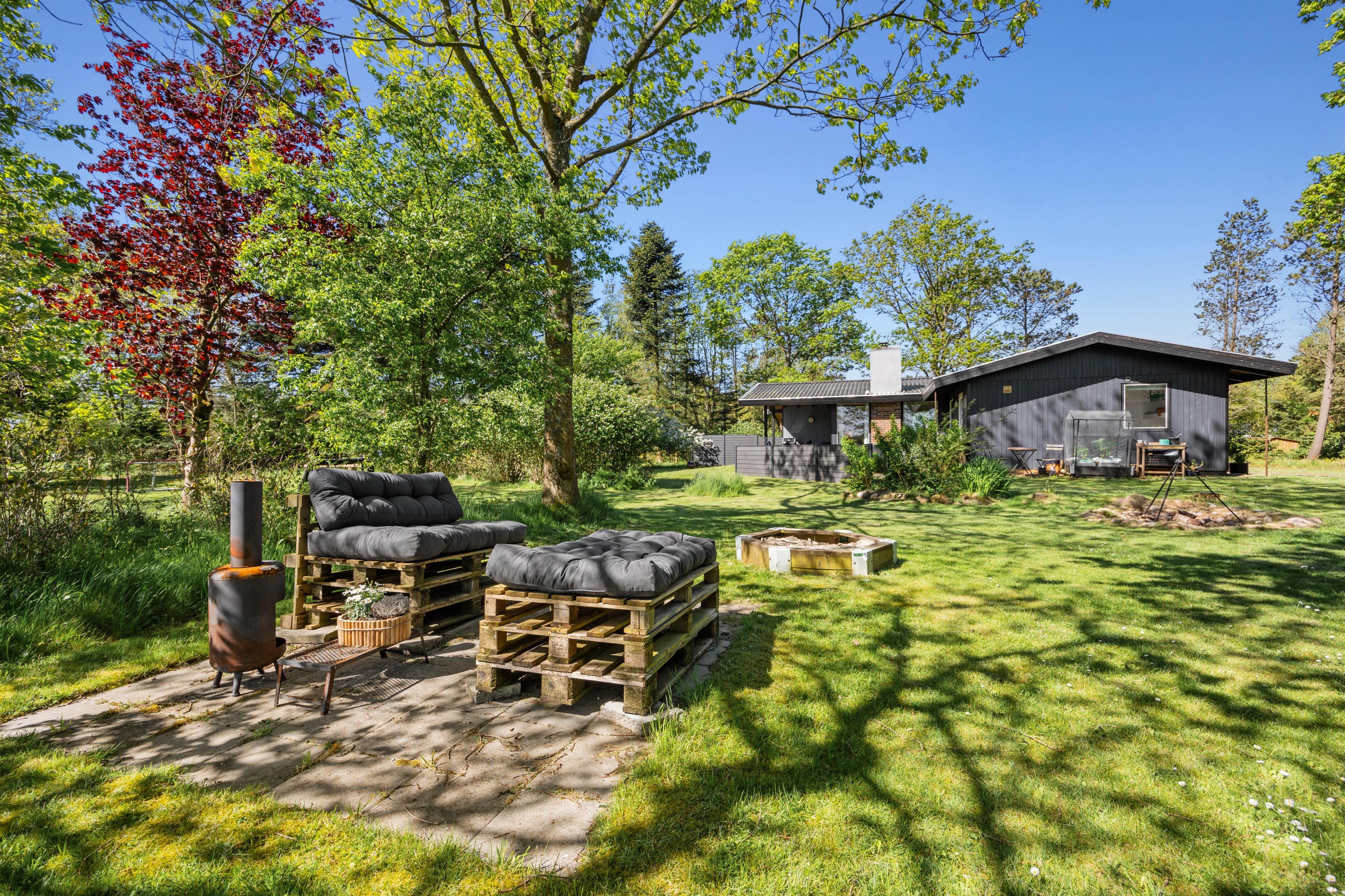 Kom til Ho og stress af i dette hyggelige feriehus mellem de mange høje træer, hvor fugle og andre dyr i stille stunder også ofte lægger vejen forbi.