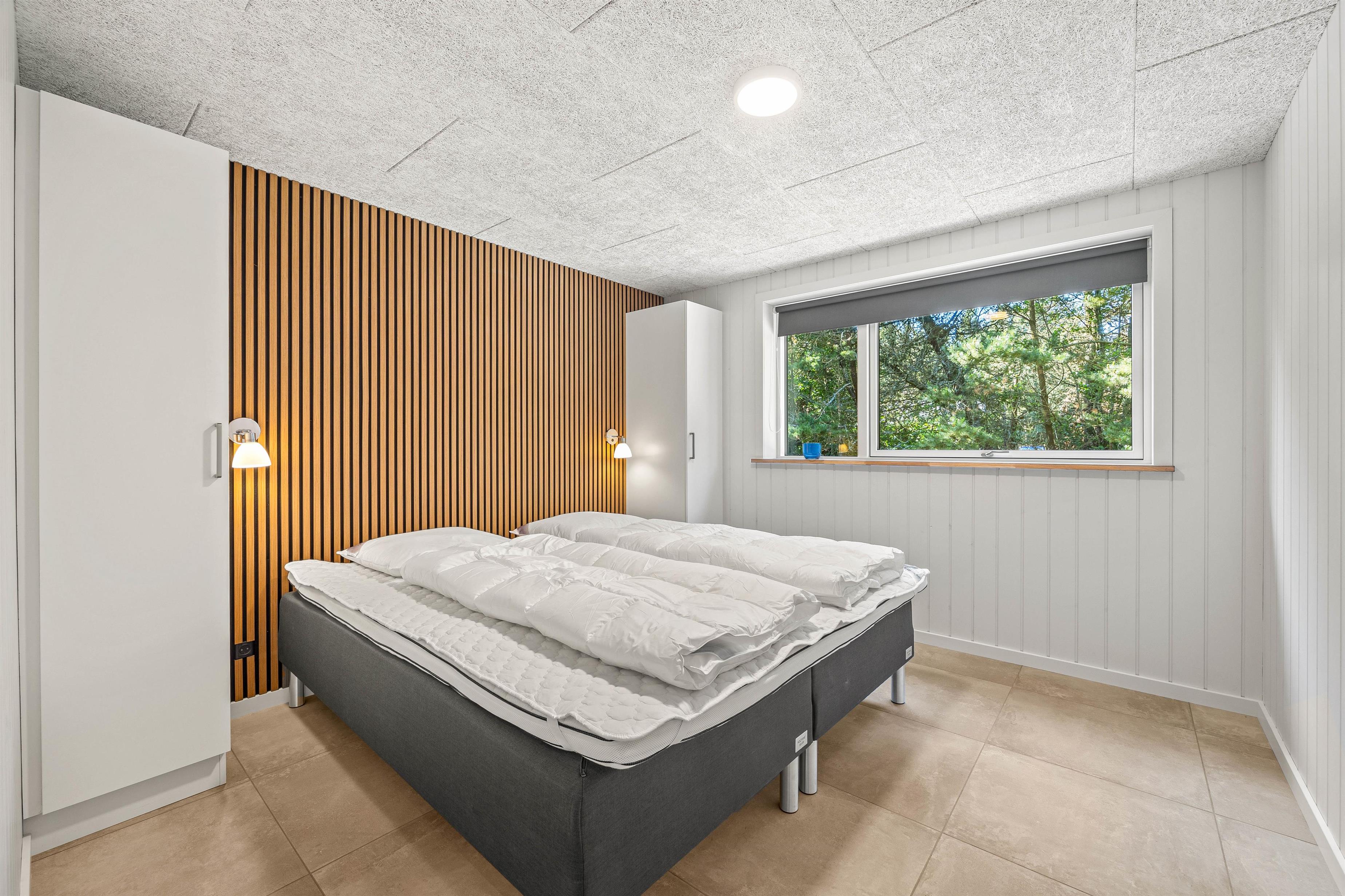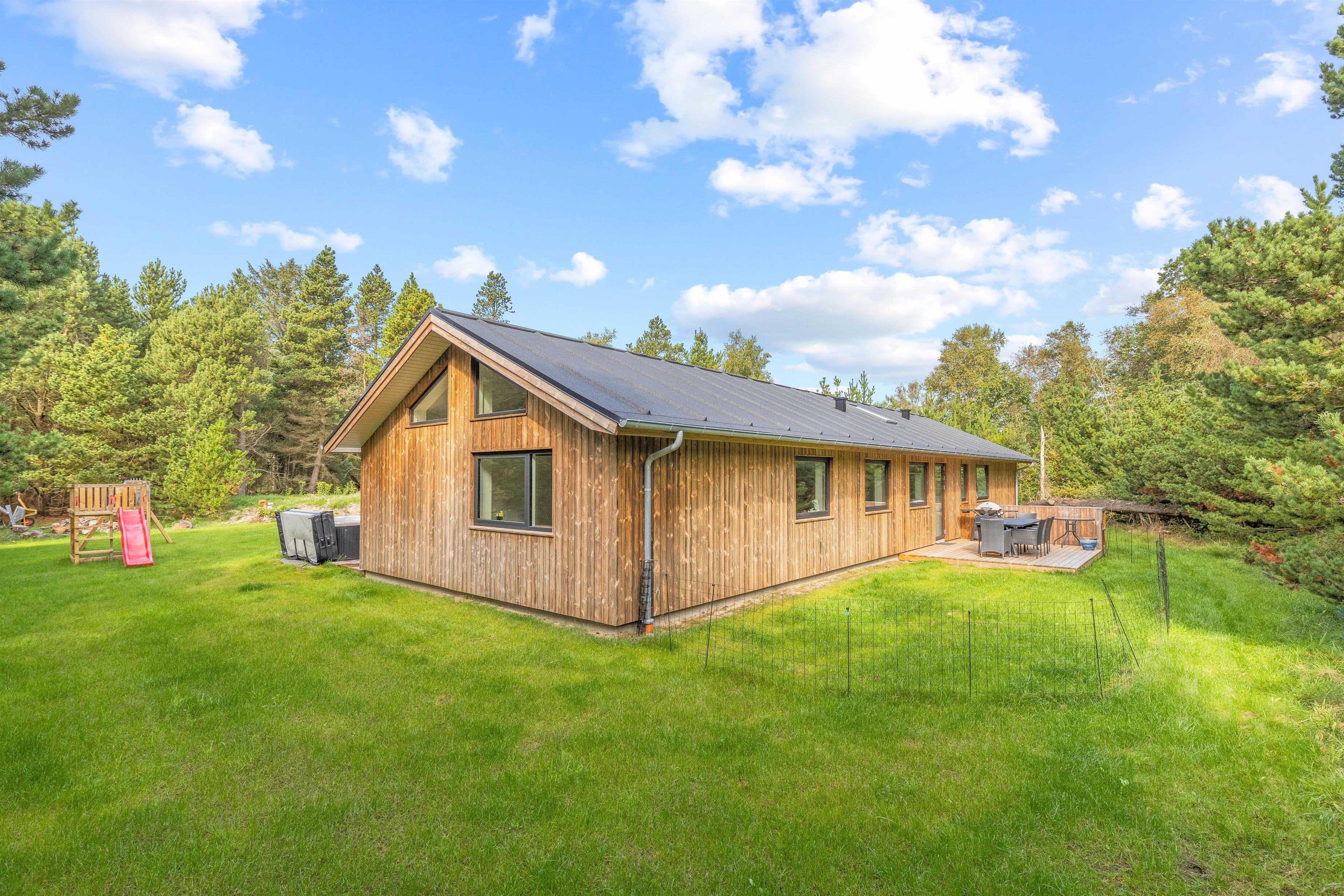 Dette lyse og smukke feriehus på Hedevej 18 er bygget i 2024 og omgivet af store træer. Her kan en stor familie eller en flok venner nyde en skøn Vesterhavsferie. Hunden er også velkommen. Glæd jer til en tid sammen med fred og ro, natur og et skønt udendørs spabad, som helt sikkert vil medvirke til en rigtig afslappende ferie. Stue, køkken og spiseplads er indrettet i åbent plan, og der mangler ikke moderne faciliteter her. I får 2 badeværelser, vaskemaskine, tørretumbler, en energibesparende varmepumpe og en ladestander til el-bil til rådighed.