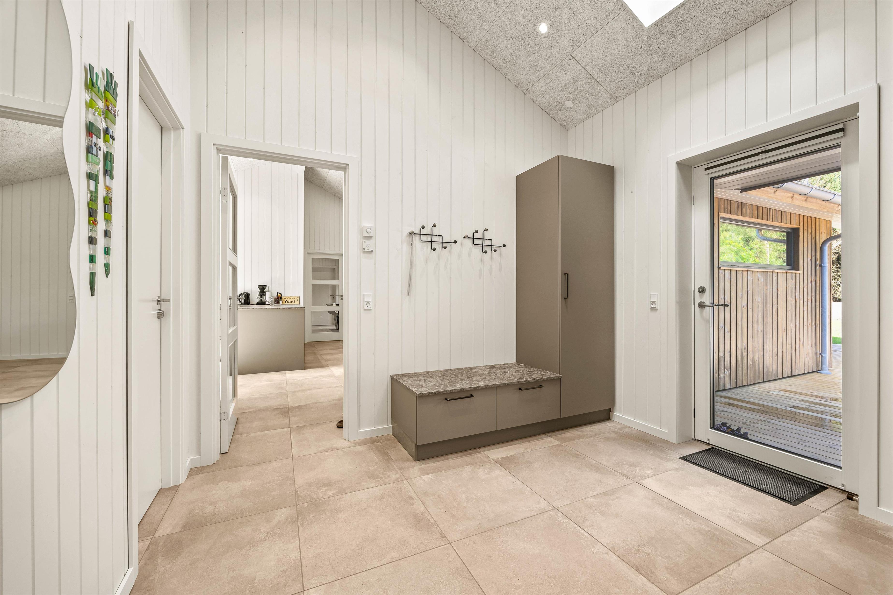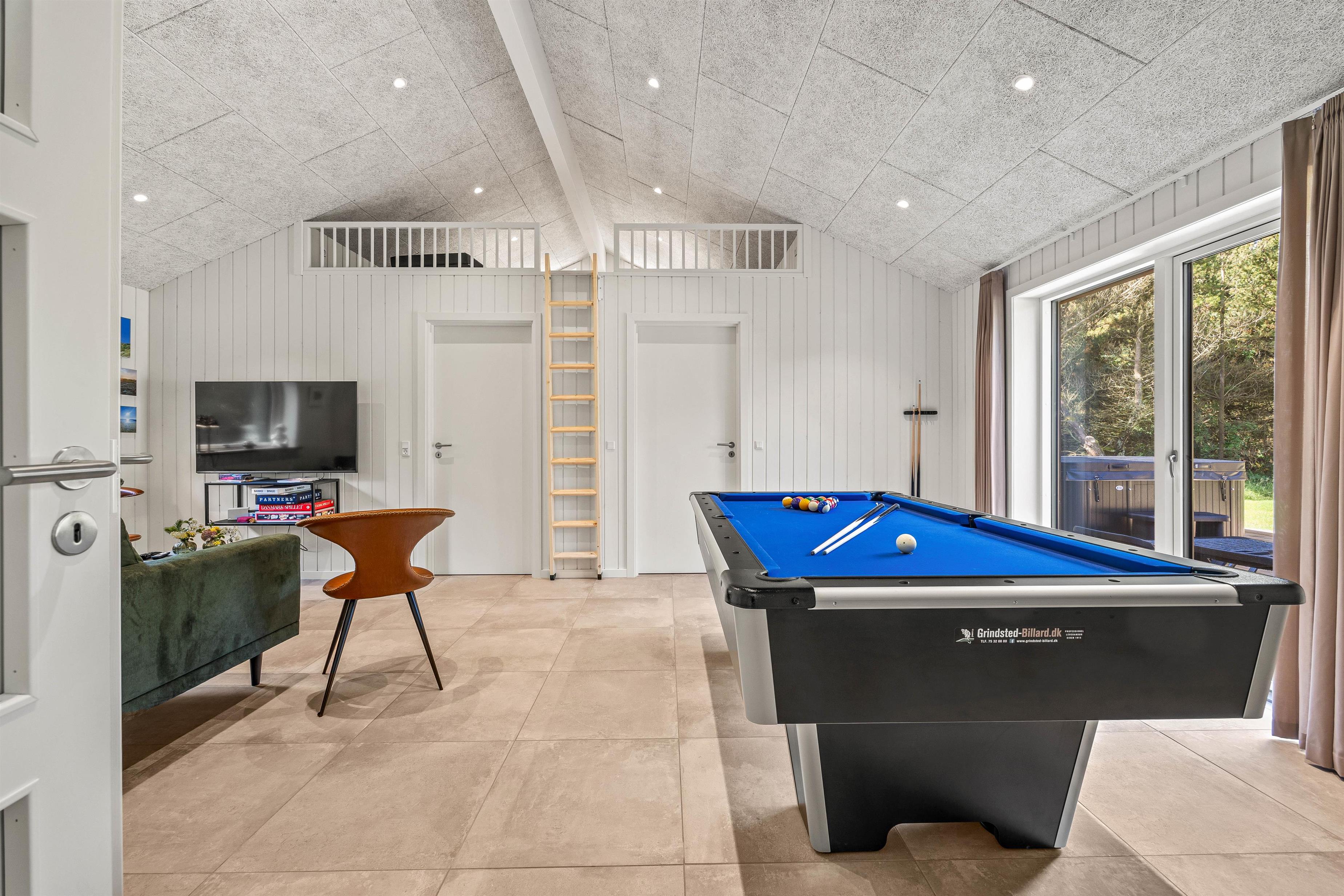 Man føler sig hjemme, straks man træder ind ad døren til feriehuset på Hedevej 18. Den lyse, moderne indretning er gennemført og tænder straks for feriestemningen. Slap af i sofaen, spil et brætspil ved spisebordet eller hyg dig med en god bog. Til en rask konkurrence og aktivitet er der poolbord og bordtennis. I den store, lyse stue kan alle tilbringe aftenen sammen. Det åbne køkken indeholder alt, hvad I behøver for at tilberede lækre retter – opvasken tager maskinen sig af. Den energibesparende varmepumpe sikrer behagelige temperaturer i feriehuset, mens to rummelige badeværelser med gulvvarme gør tandbørstningen til en fornøjelse. En lang og begivenhedsrig dag afsluttes på bedste vis i husets sauna og/eller udendørs spabad.