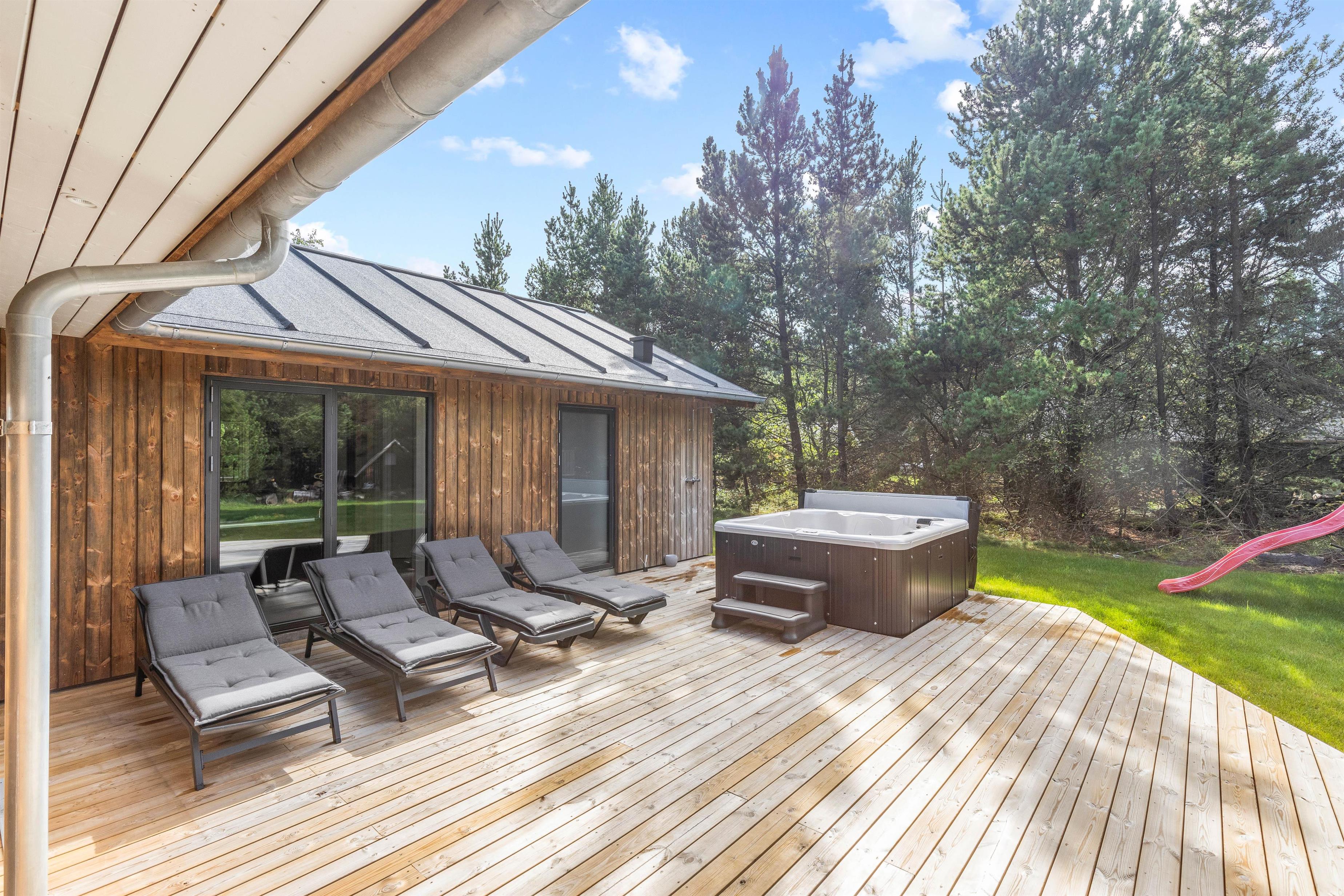 Den smukke terrasse har både et afskærmet og et overdækket område, så I kan flytte rundt efter vejret. Tag solbad på de komfortable liggestole eller slap af i havemøblerne. Efter en tur på stranden eller gennem de smukke naturområder i Ho kan I hurtigt skylle sandet af under udendørs-bruseren og blive varme igen i boblebadet. Udebruseren kan benyttes fra 1. april til 30. oktober.