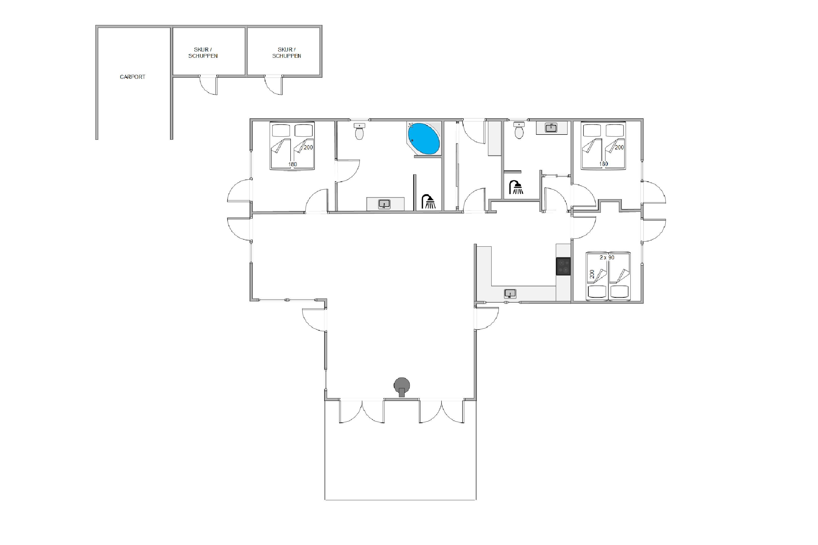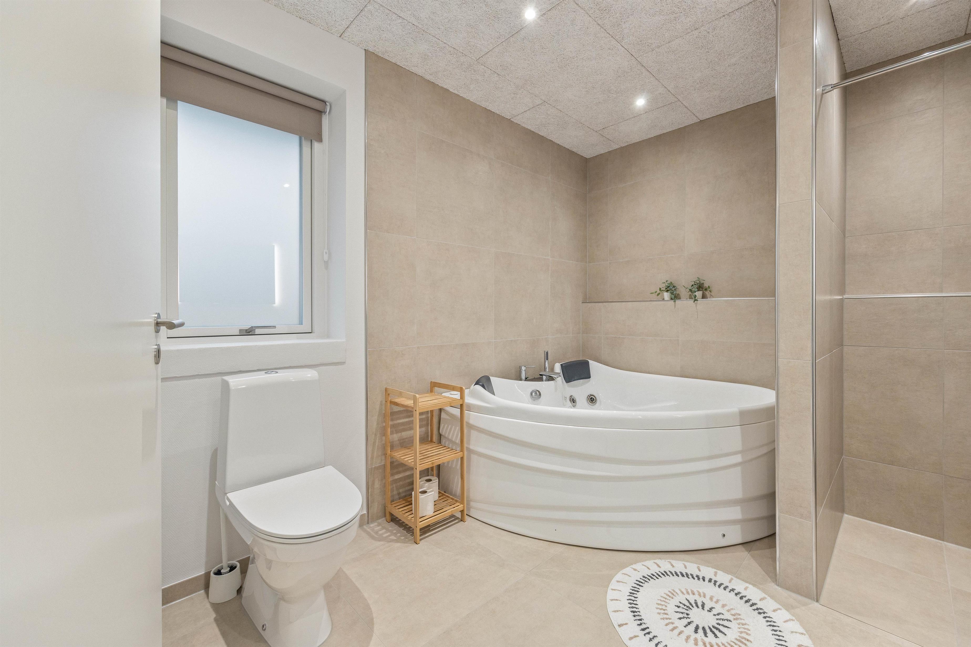 I sommerhusets 3 soveværelser venter jer 3 dobbeltsenge, som I kan samle ny energi i. Når I er udhvilede og står op til en ny dag næste morgen, skal I ikke bekymre jer om køen til badeværelset ej heller om kolde fødder, for I har nemlig 2 badeværelser i feriehuset, der begge har gulvvarme - ligesom resten af sommerhuset har det. Det ene badeværelse har også en spa, hvor I kan hygge jer og forkæle jer selv med velplejende produkter for krop og sjæl. Måske endda med et glas vin til og lidt musik i ørerne.
