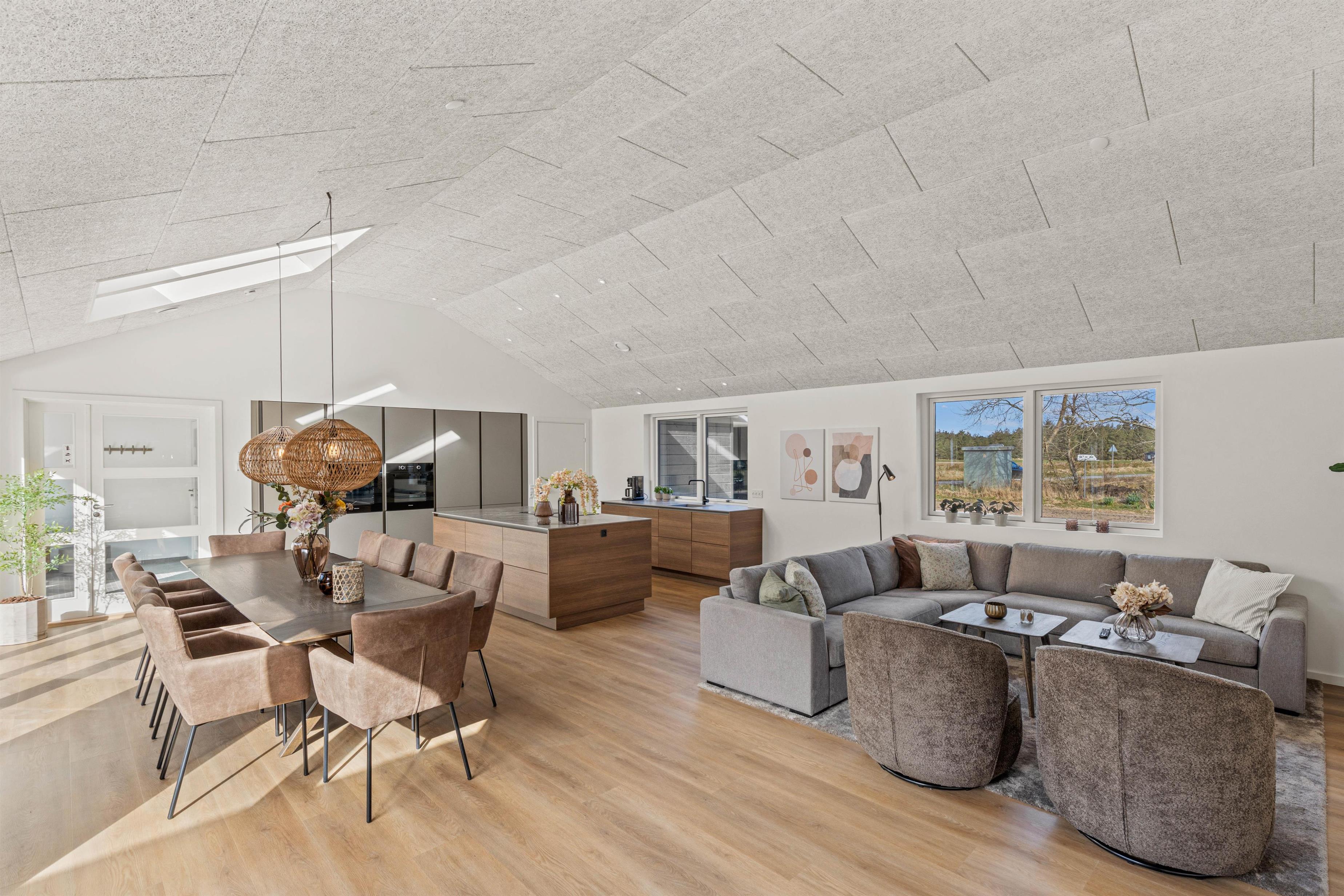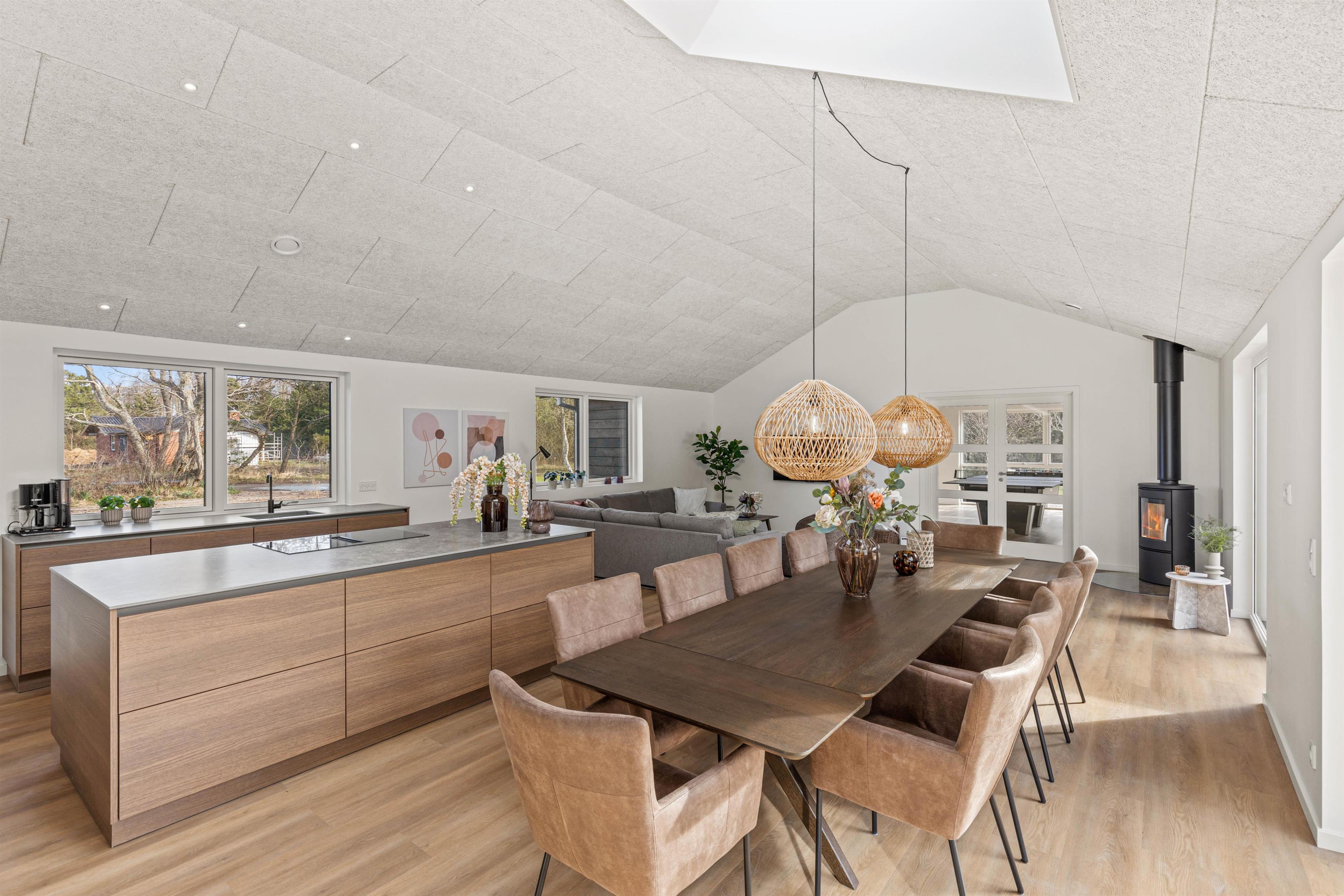 Det 269 m2 store luksushus kan danne rammen om en uforglemmelig ferie, hvor I i den grad forkæler jer selv. Den fine planløsning giver god plads til alle og gode muligheder for at være samme – også hver for sig. Lige fra ankomsten i den rummelige entre, hvor der er mulighed for at komme af med overtøjet, og videre ind i husets hjerte: det store køkken/alrum.