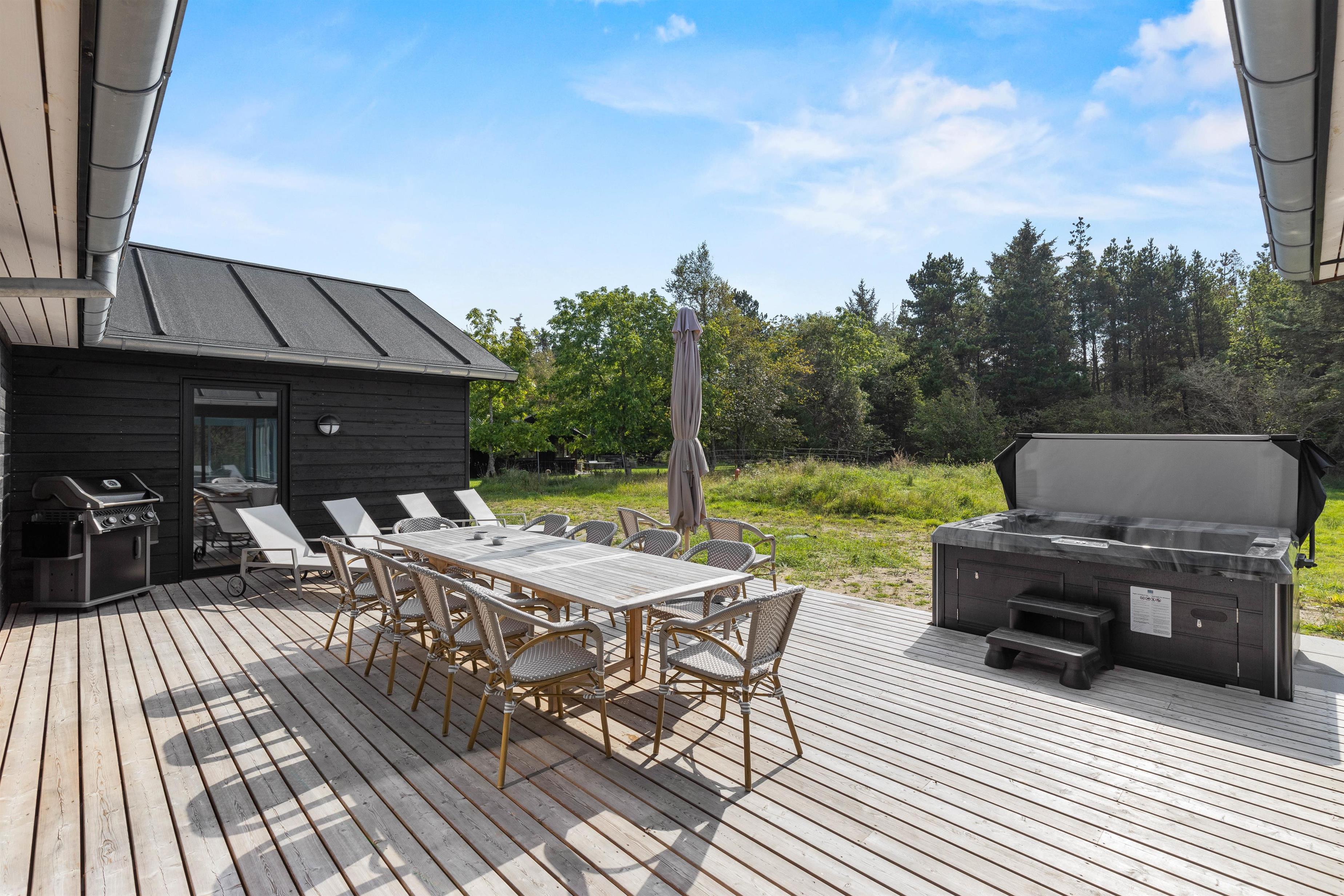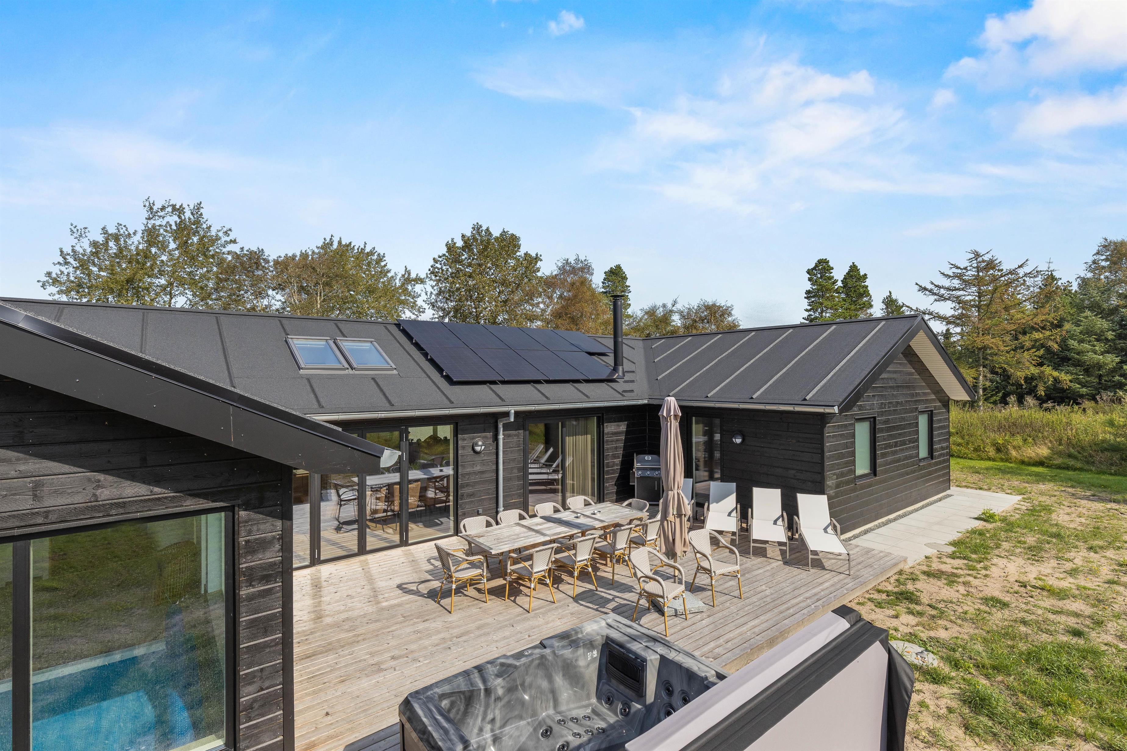 Skal I forkæle jer selv med et ophold i den vildeste luksus, skal I tage til Skallingevej 7B i Ho, hvor et helt nyt hus bygget i udsøgte materialer og med alle ønskelige faciliteter venter på op til 10 personer. Udover at elforbruget er inklusive i lejeprisen får I: soveværelser med eget badeværelse, biograf, aktivitetsrum med bordtennis og billard, 24 m2 pool, sauna, udespa, carport med ladestander (husk kabel/adapter).