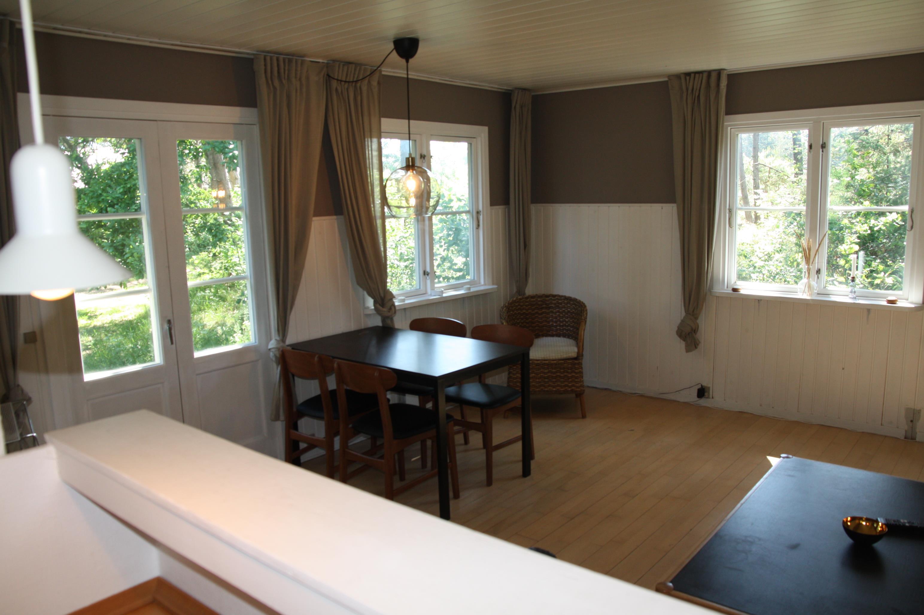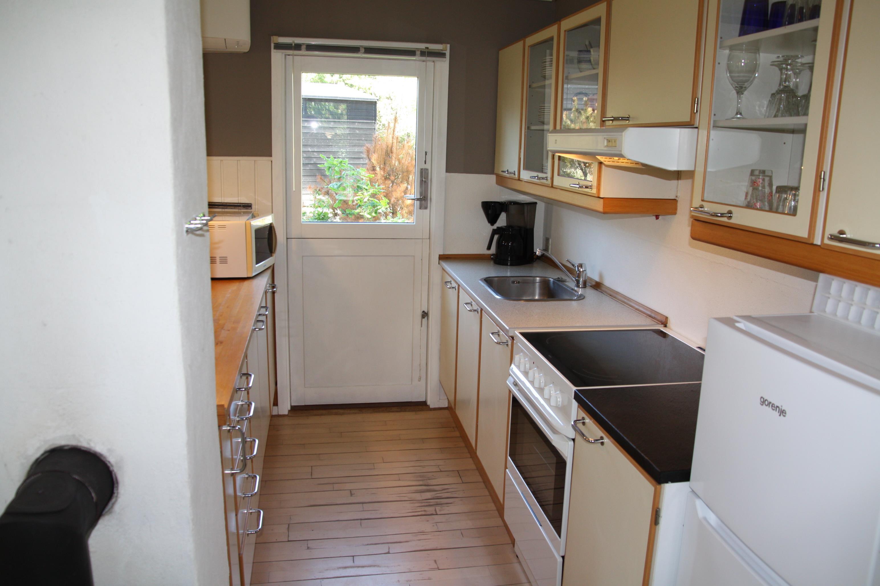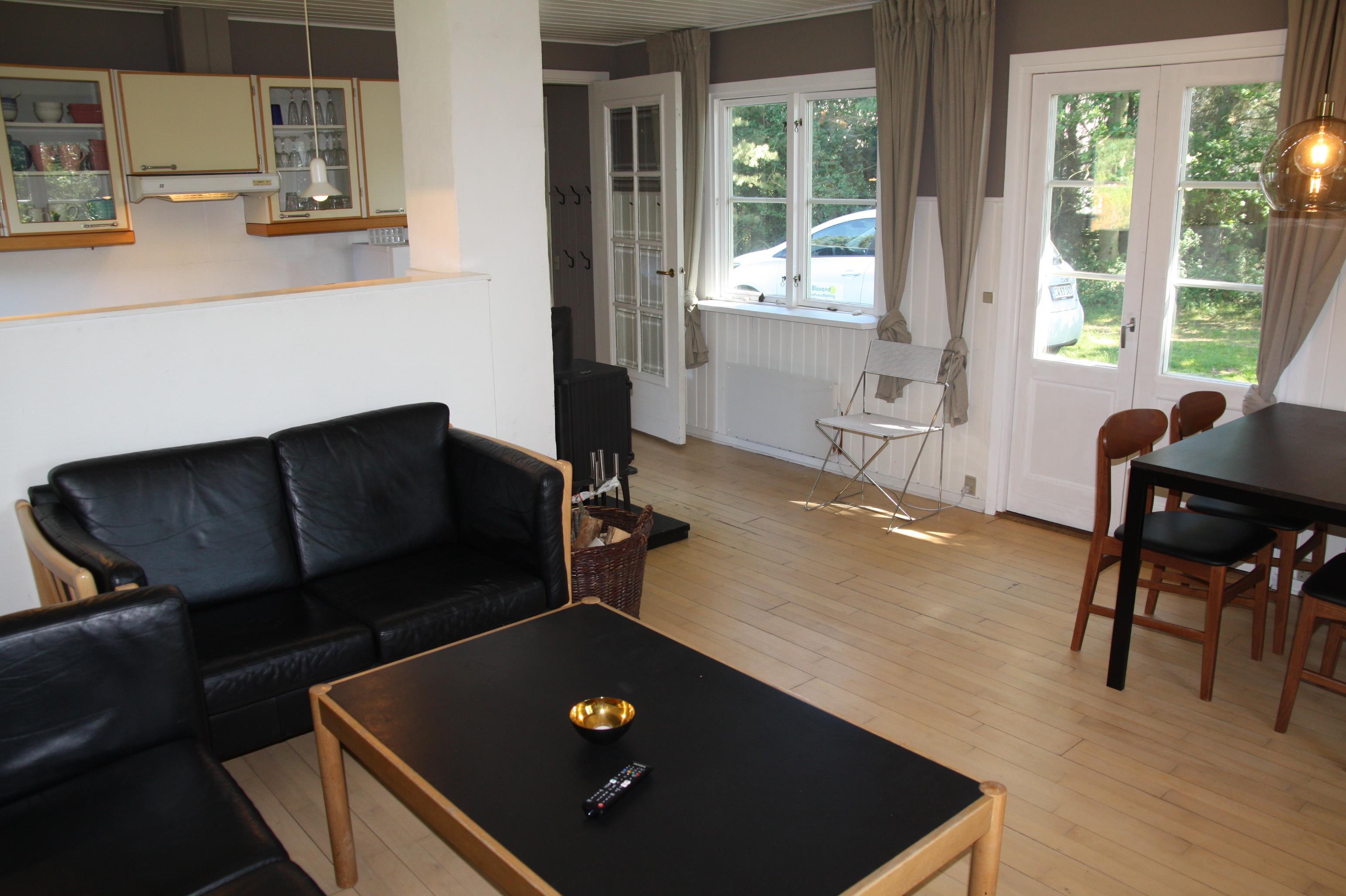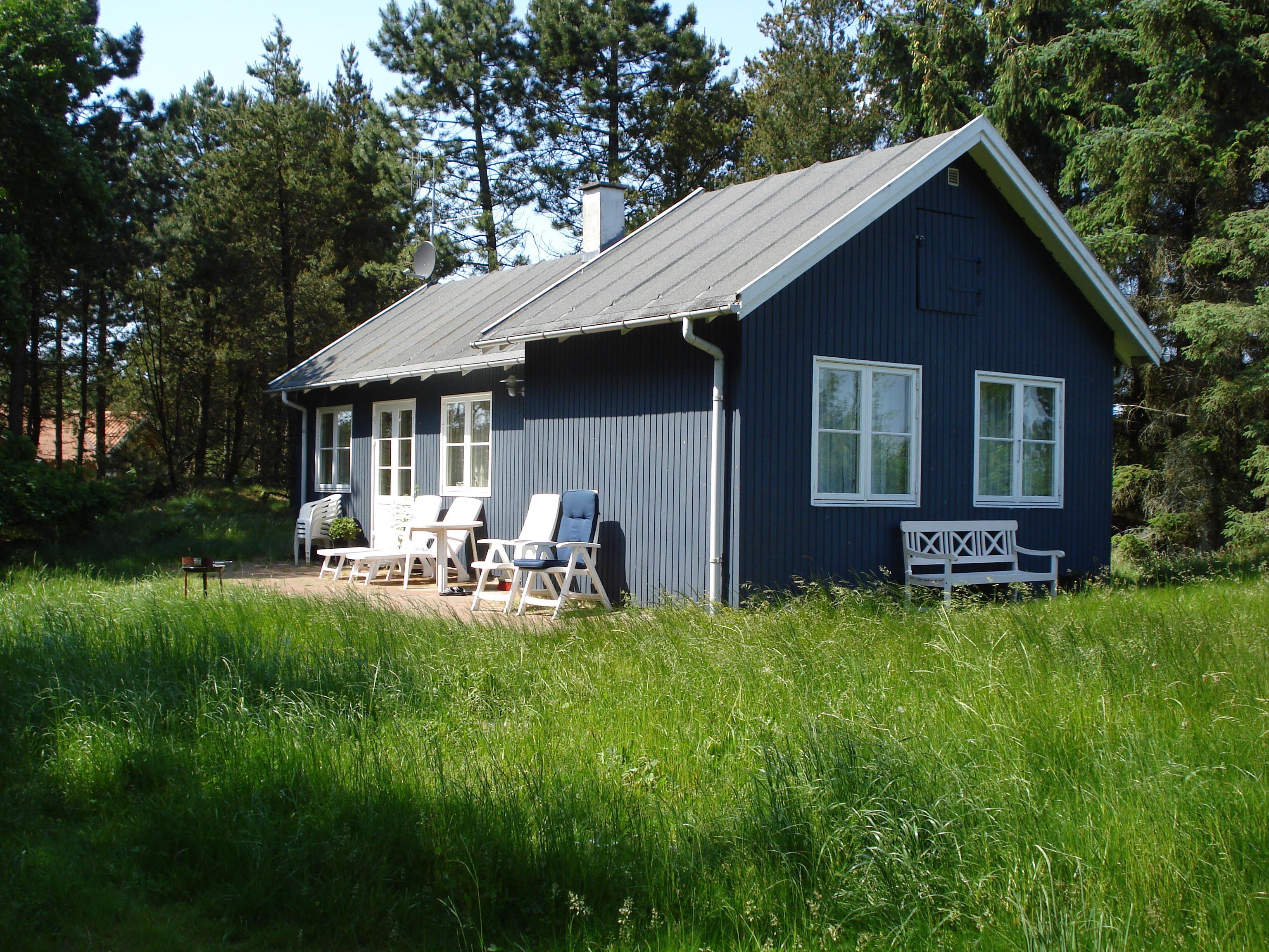 Ein charmierendes kleines Holzhaus. Das Haus liegt auf einem Naturgrundstück nicht weit vom Fischteich, Golfcenter und Bowling/Badeland. Das Haus hat Holzfussboden und ist hell und gemütlich.. 1 doppelbett. 2 einzelbetten. Baujahr 1988, Holzhaus. Microwelle. Farb-TV und SAT-Empf., Kaminofen. Blick über Ho bugt.