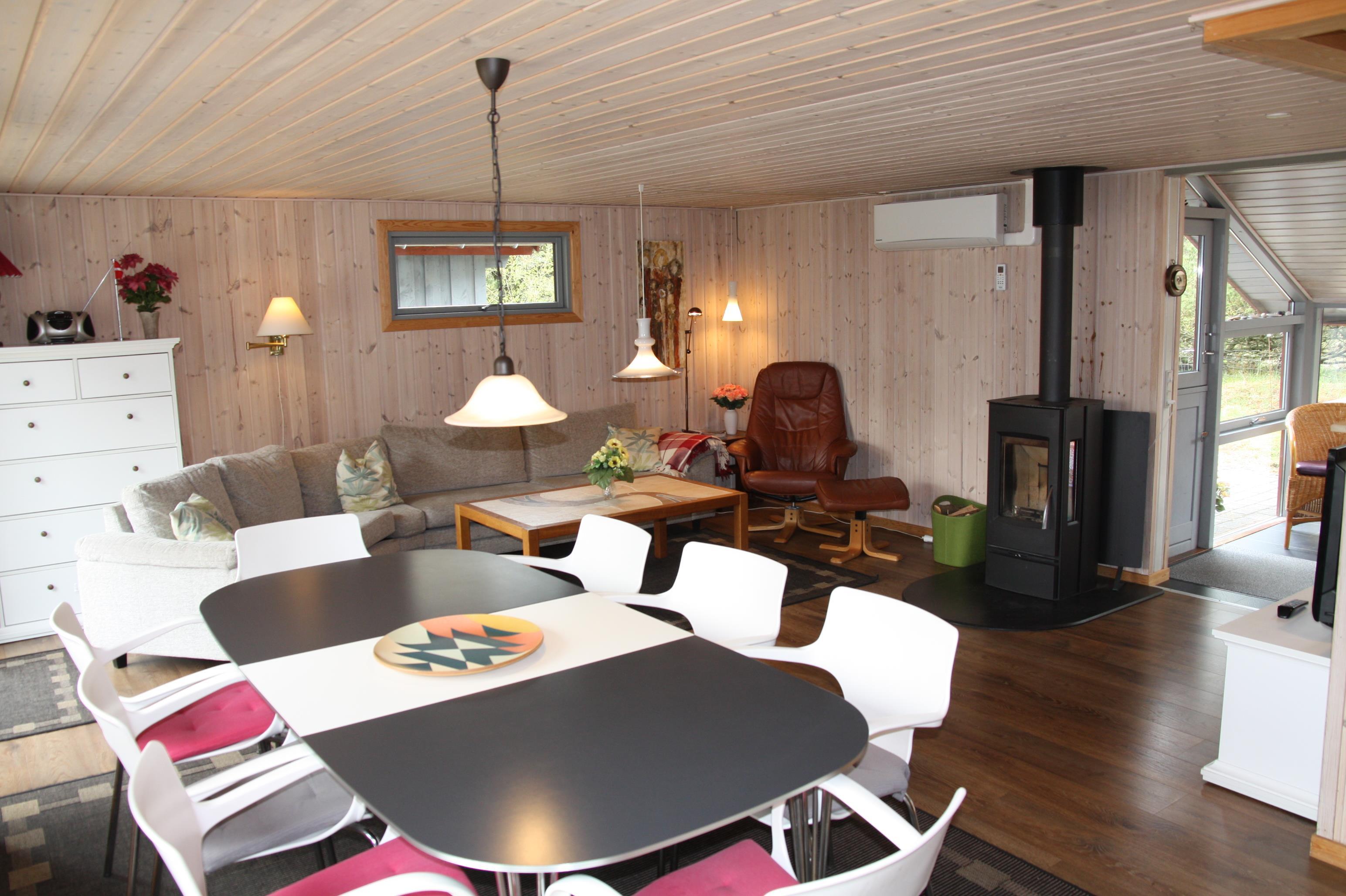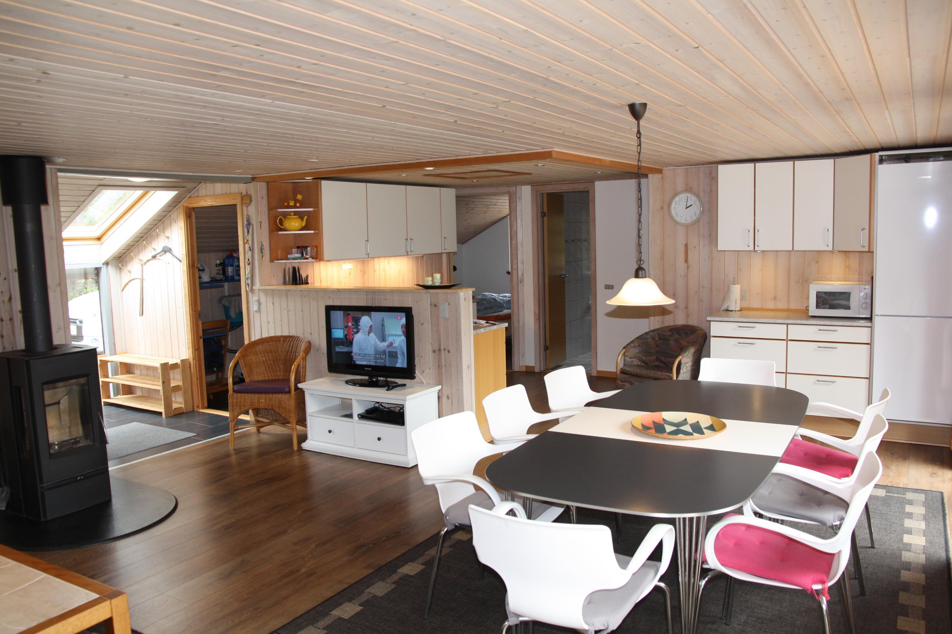 Ein schönes Holzhaus in guter Lage mit Aussicht über die Ho Bucht. Das Haus ist neu renoviert mit einem Annex für Gäste inkl. Badezimmer/WC. Das Haus hat eine Klimaanlage und liegt auf einem Naturgrundstück nicht weit vom Fischteich, dem Badeland 1 doppelbett. 2 einzelbetten. Anbau m/ 1 doppelbett. Anbau m/ 1 doppelbett. Baujahr 1967, Holzhaus, NICHT RAUCHER, Wärmepumpe. Spülmaschine, Seperates Gefrierfach. Gäste wc, Waschmaschine, Trockner, Fussbodenheizung. Farb-TV und SAT-Empf., Kaminofen, Radio. Blick über Ho bugt, Naturgrundstück mit Bäumen.