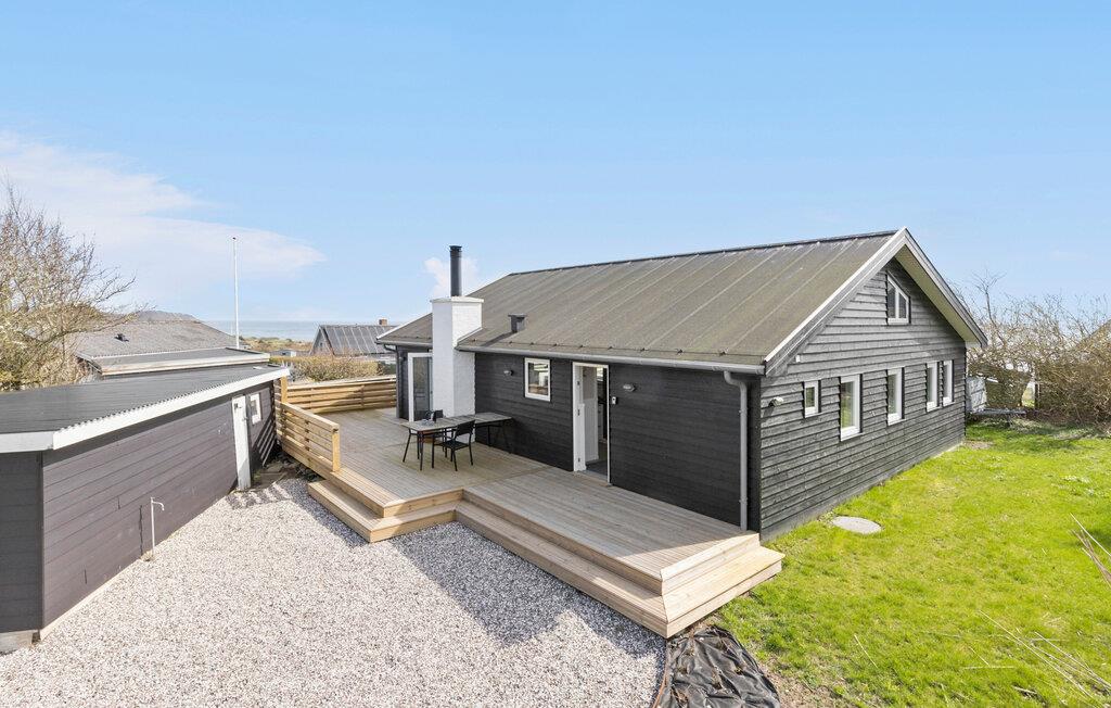 Huset ligger på en dejlig, åben grund med en stor terrasse, der lokker til mange skønne timer, når solen skinner. Børnene kan løbe rundt og lege i det fri, mens de voksne slikker sol med en god bog på terrassen og nyder udsigten. Hen under aftenen kan I fyre op i grillen og servere saftige bøffer og spyd under den lune aftensol.