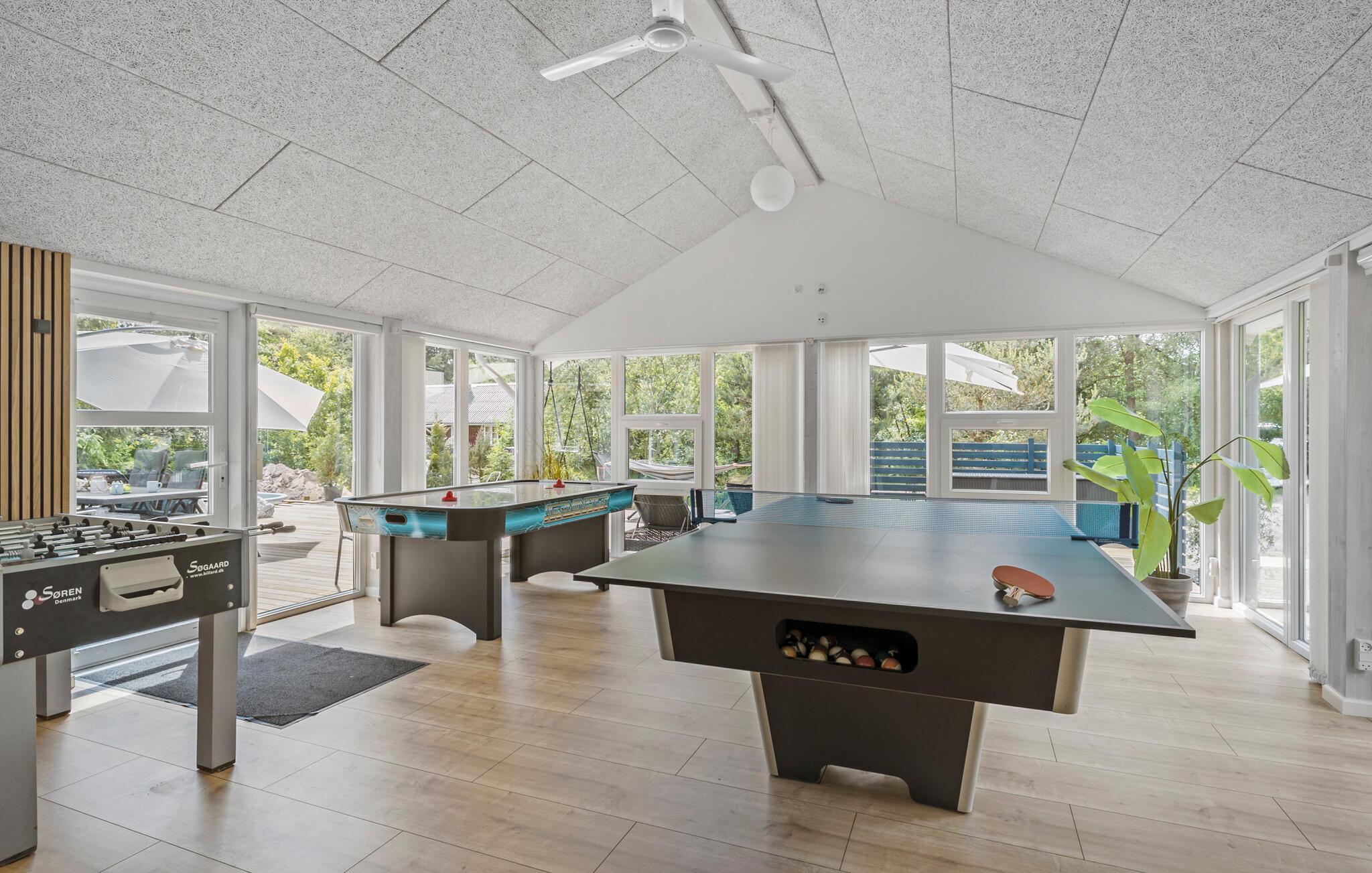 Velkommen til dette skønne hus, der ligger i et roligt sommerhusområde på en dejlig naturgrund og danner rammen om årets bedste uger med familien. Huset er lyst og flot indrettet over hele linjen. Entréen ligger i åben forbindelse med spisestuen og det rummelige køkken, som er udstyret med alt, I behøver til at kræse om livretterne. Fra køkkenet er der direkte adgang til spisestuen og opholdsstuen med god plads til at hygge sig over måltiderne. Sæt jer godt til rette i sofaen og stream en god film eller serie. I kan også hygge jer i det store, lyse aktivitetsrum med bordfodbold, dart, airhockey, bordtennis og poolbord.