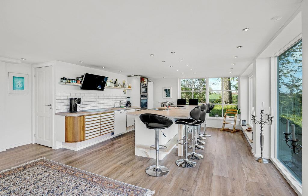 Velkommen indenfor i dette smagfuldt indrettede feriehus med stilfulde møbler. Her kan du hygge dig ved den lune pejs eller med et glas vin i stuen. Den originale, moderne udformning af rummene giver masser af plads og en behagelig atmosfære. Takket være de store vinduesfronter kommer der utroligt meget lys ind, hvilket bidrager til den afslappede, naturnære stemning. Alle gæster får noget for pengene her, ikke mindst i aktivitetsrummet, hvor et poolbord venter på dig. Udenfor er der en rummelig terrasse samt havemøbler og en grill, som inviterer til at nyde morgenmaden i det fri og afslutte dagene med grillmad og havudsigt.