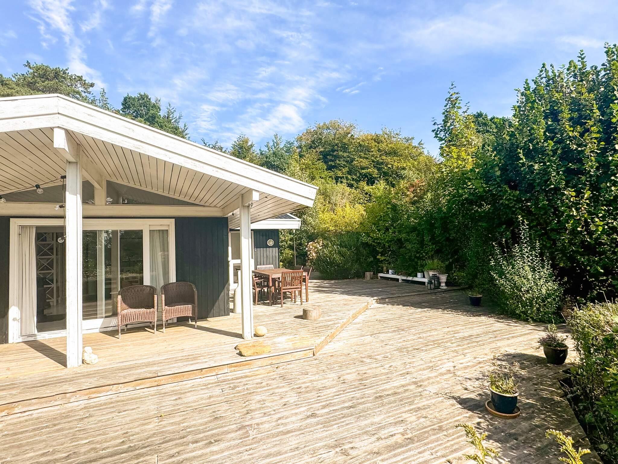 Sommerhus med stor, delvist overdækket terrasse ca. 200 meter fra børnevenlig sandbadestrand. Huset er indrettet i lys og smagfuld stil med alle moderne bekvemmeligheder og inviterer til hygge og afslapning både inde og ude. Husets terrasse omgiver husets tre sider og sikrer sol og læ hele dagen, inden solnedgangen kan nydes ved grillen.
