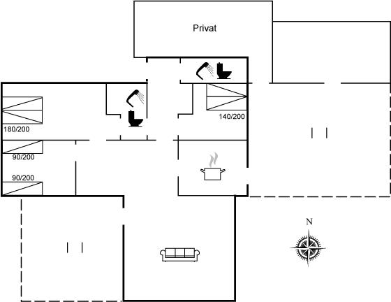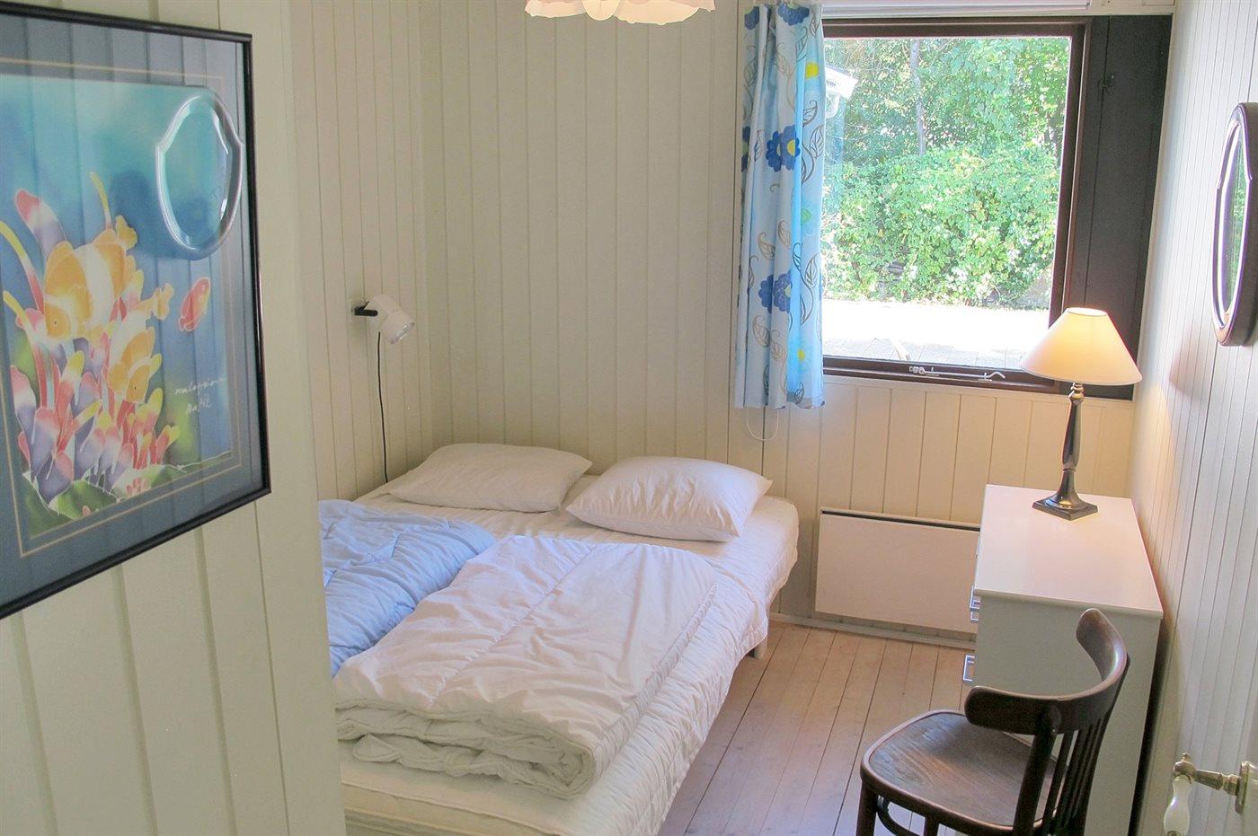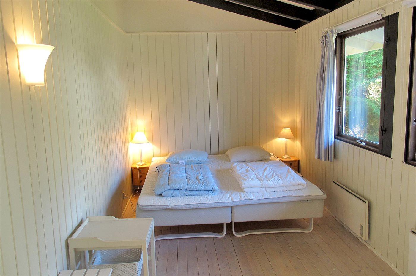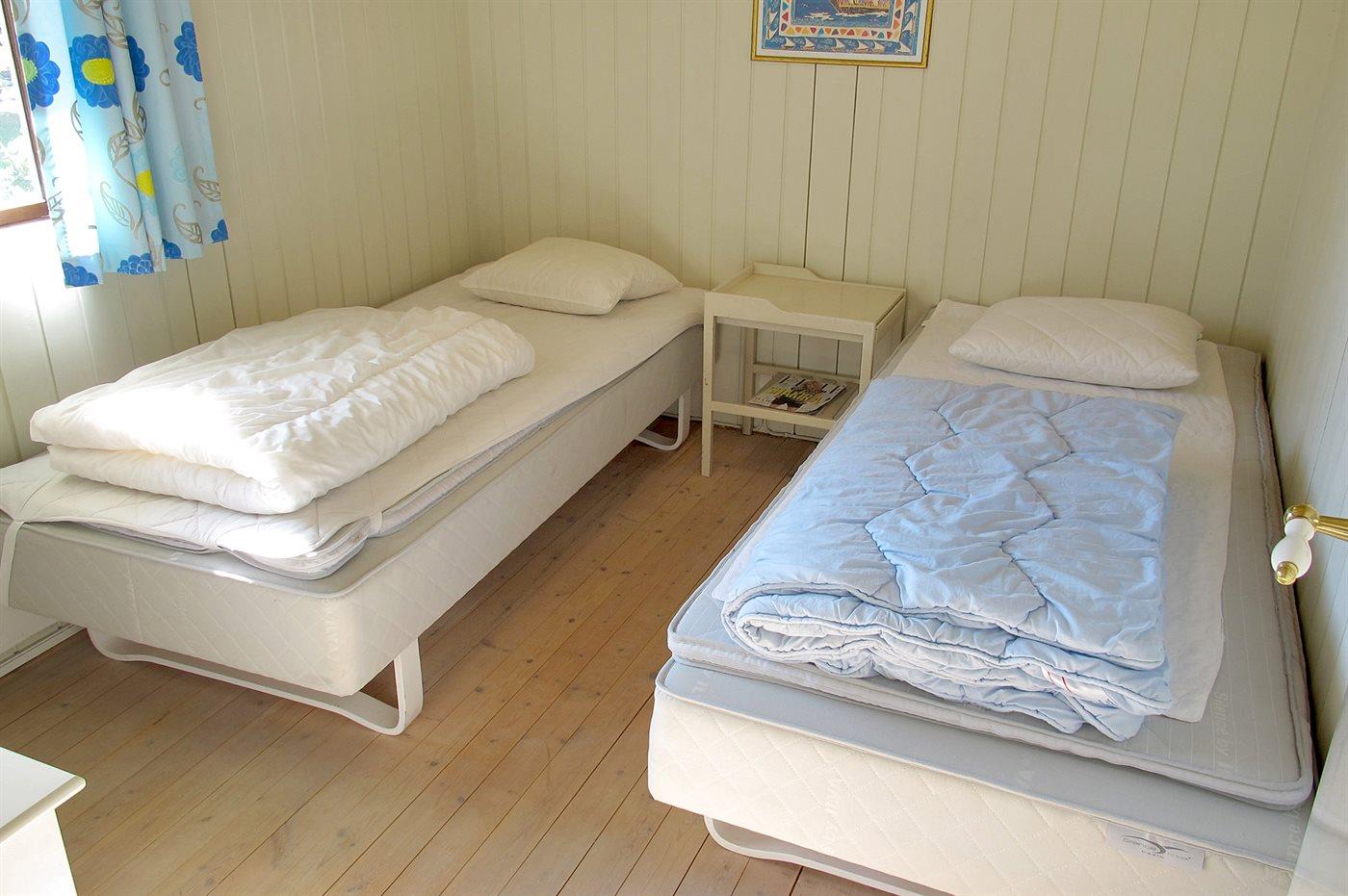 Der er i alt 3 soveværelser. Sovepladserne fordeler sig på: 4 sovepladser i dobbeltsenge. 2 sovepladser i enkeltsenge.