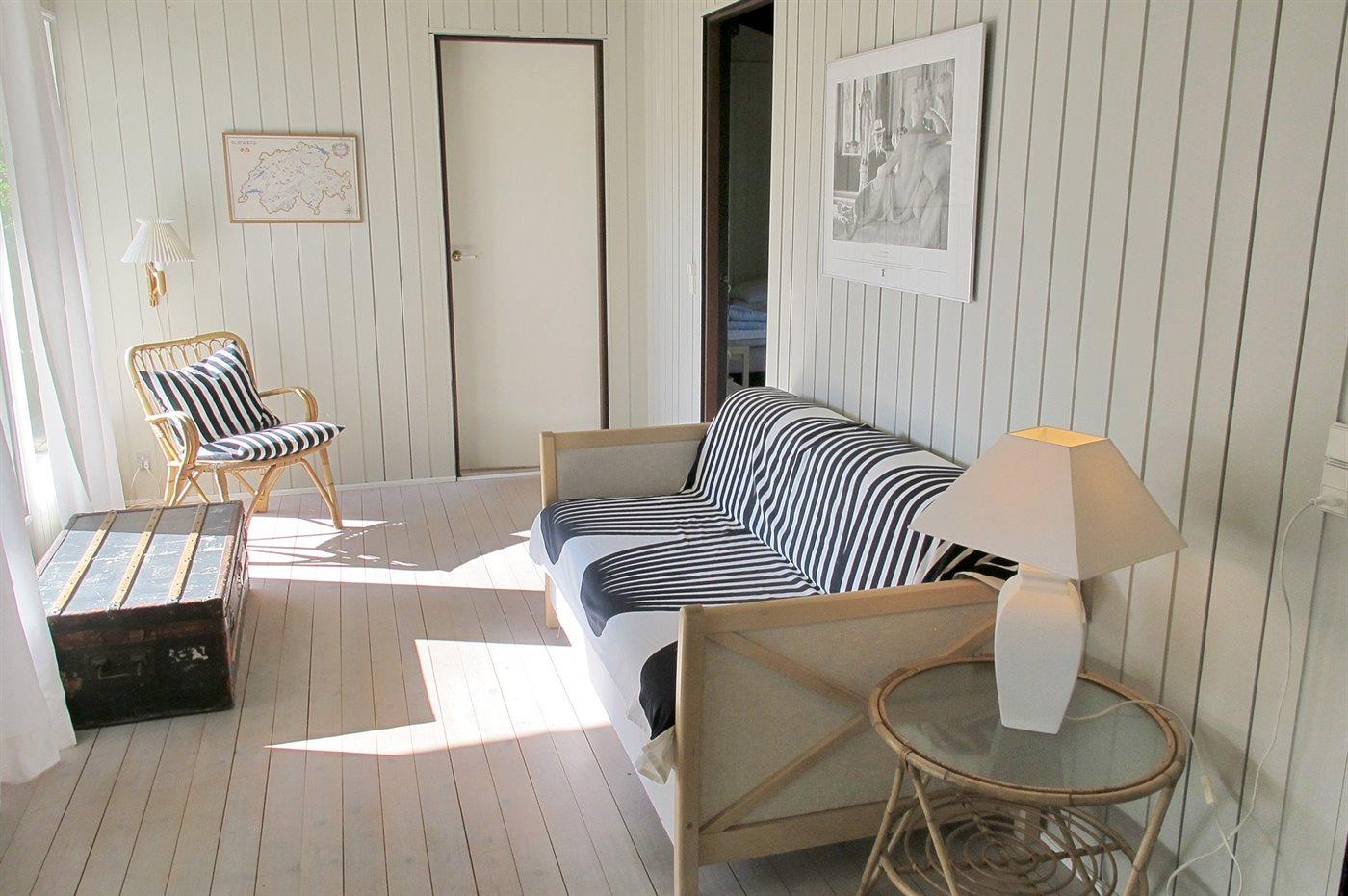 Hyggeligt og lyst indrettet sommerhus med god plads samt udgang til dejlig lukket have.