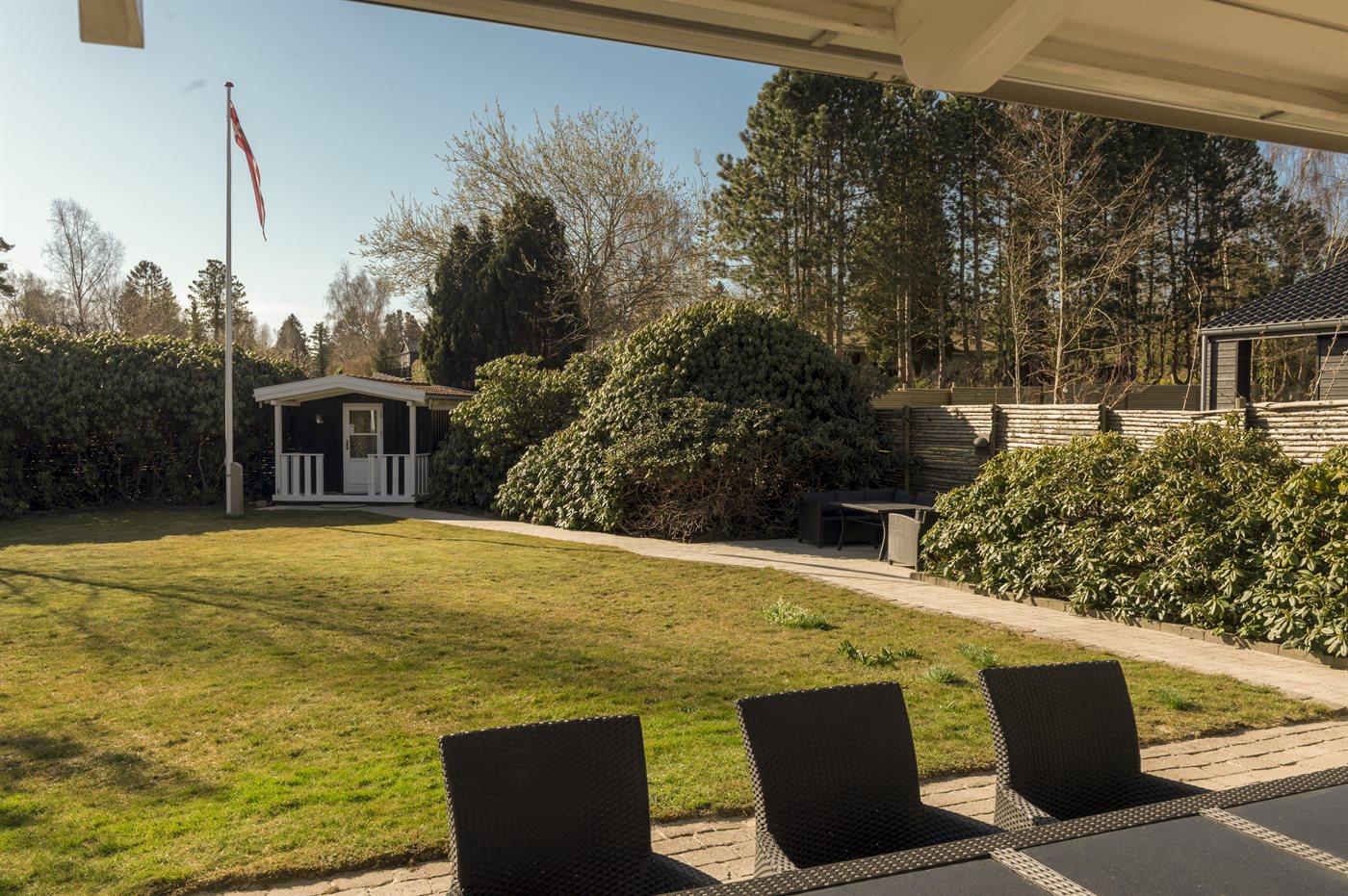 Moderne sommerhus i roligt område nær Hornbæk med smart-TV, opvarmet terrasse og elbil-ladestik.