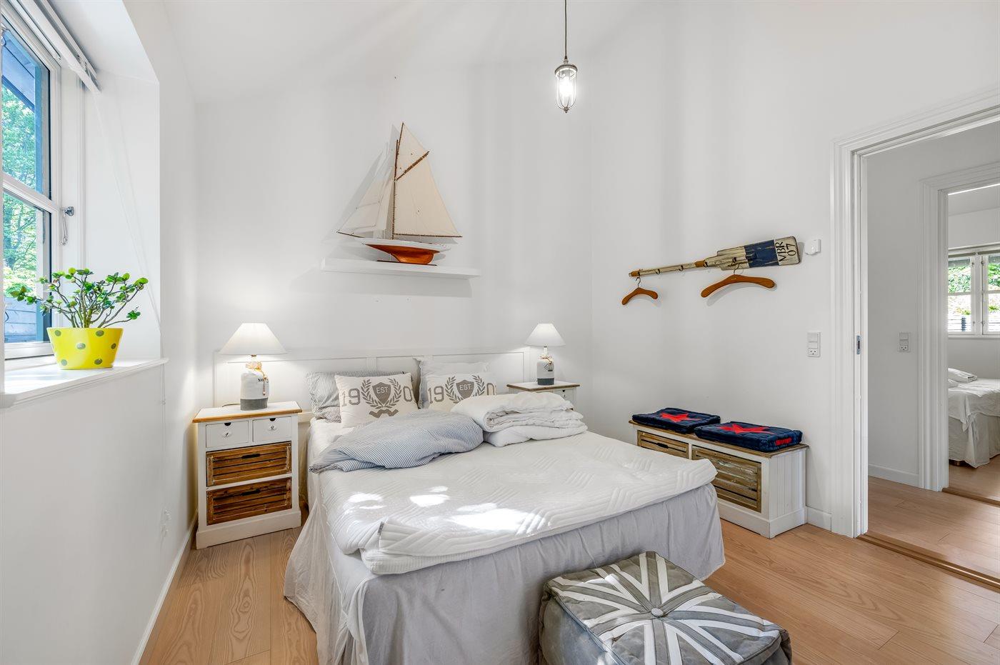 Der er i alt 4 soveværelser. Sovepladserne fordeler sig på: 6 sovepladser i dobbeltsenge. 2 sovepladser i enkeltsenge. 2 sovepladser på madrasser.