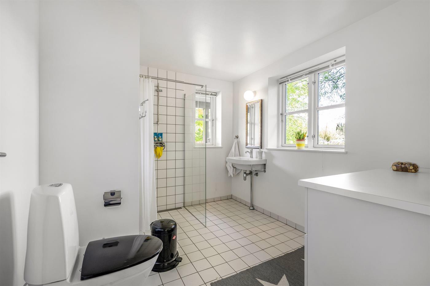 Der er 2 badeværelser med bruseniche og 2 toiletter. Der er gulvvarme på 2 badeværelser.