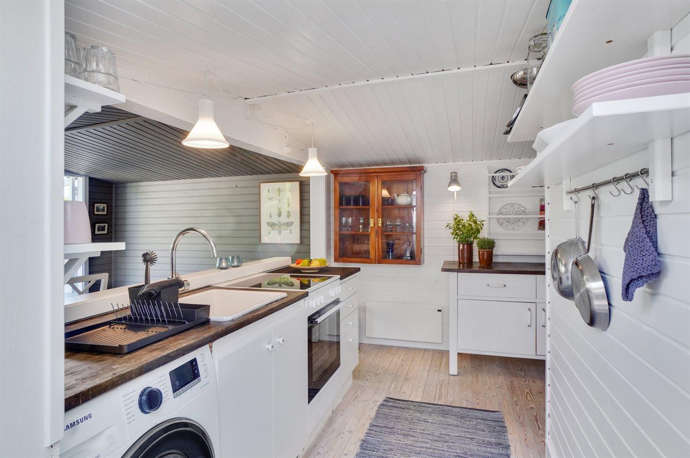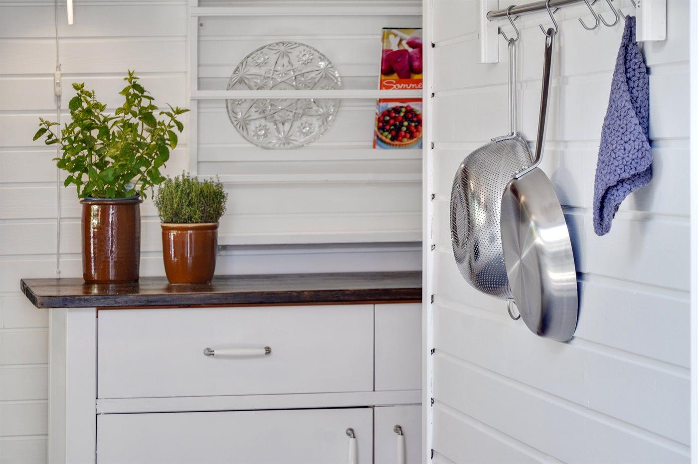 Køkkenet er udstyret med 1 køleskab. Der er 4 keramiske kogeplader, varmluftovn.