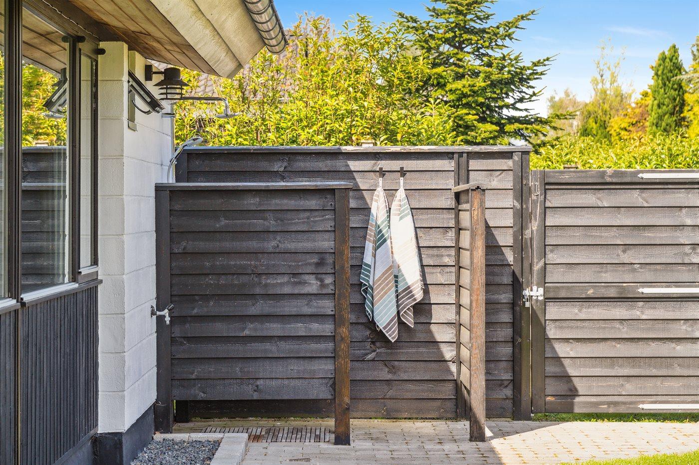 Ferieboligen er beliggende på en 967 m² stor havegrund. Der er 1000 m til havet. Nærmeste forretning er beliggende i en afstand af 350 m. Til ferieboligen hører 55 m² terrasseareal. Desuden er der 30 m² overdækket terrasse. Udendørs bruser. Grill til rådighed. Der er carport til rådighed. Parkering ved ferieboligen.