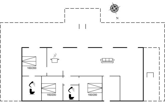 Indretningen egner sig godt til familier og par, der ønsker god plads og mulighed for både fælles hygge og privatliv. Huset har en naturlig opdeling med soveafsnit og badeværelser, som gør det behageligt at være flere under samme tag.