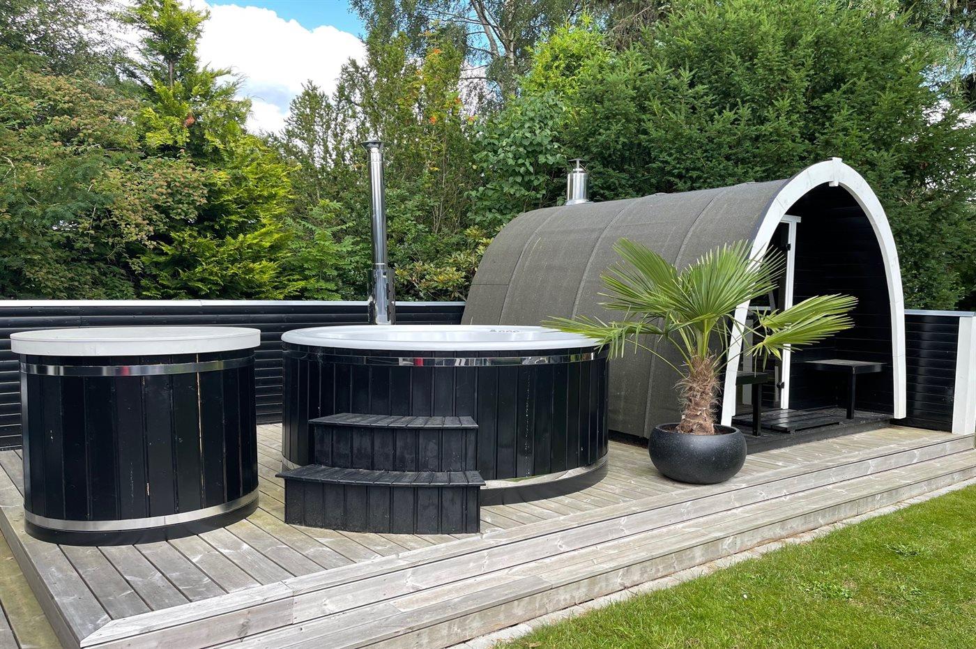 Der er mulighed for afslapning i det udendørs vildmarkskar til 4 personer.