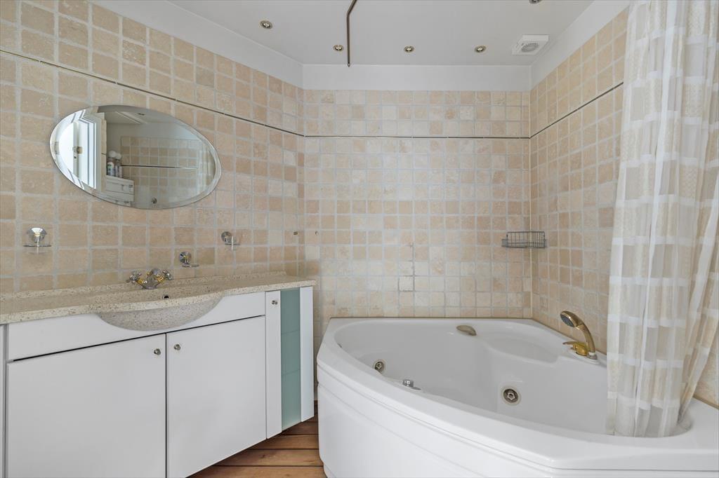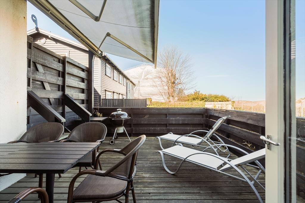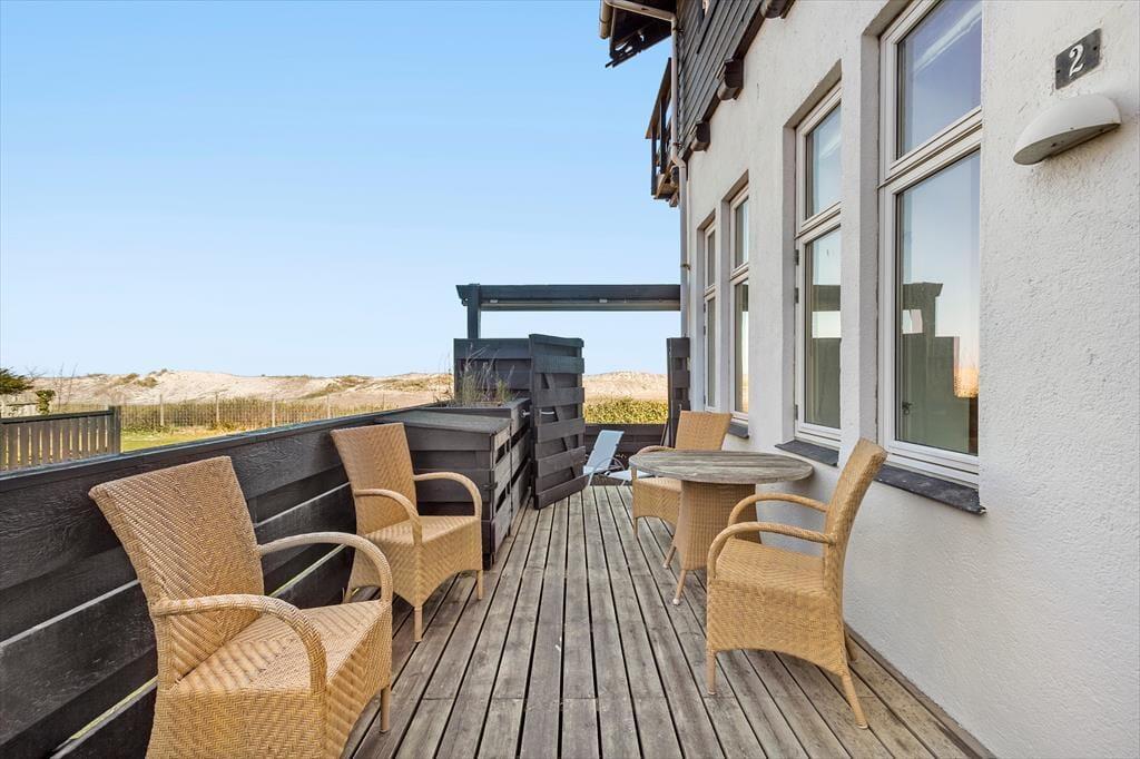 Lejligheden har to dejlige terrasser, hvoraf den ene vender ud mod vandet, perfekt til måltider under åben himmel. Den lukkede terrasse har udsigt til et grønt område, og kun 20 meter væk finder du den skønne sandstrand. Her kan du høre bølgernes beroligende brusen, mens du nyder din morgenkaffe eller en stille aftensmad i det fri.