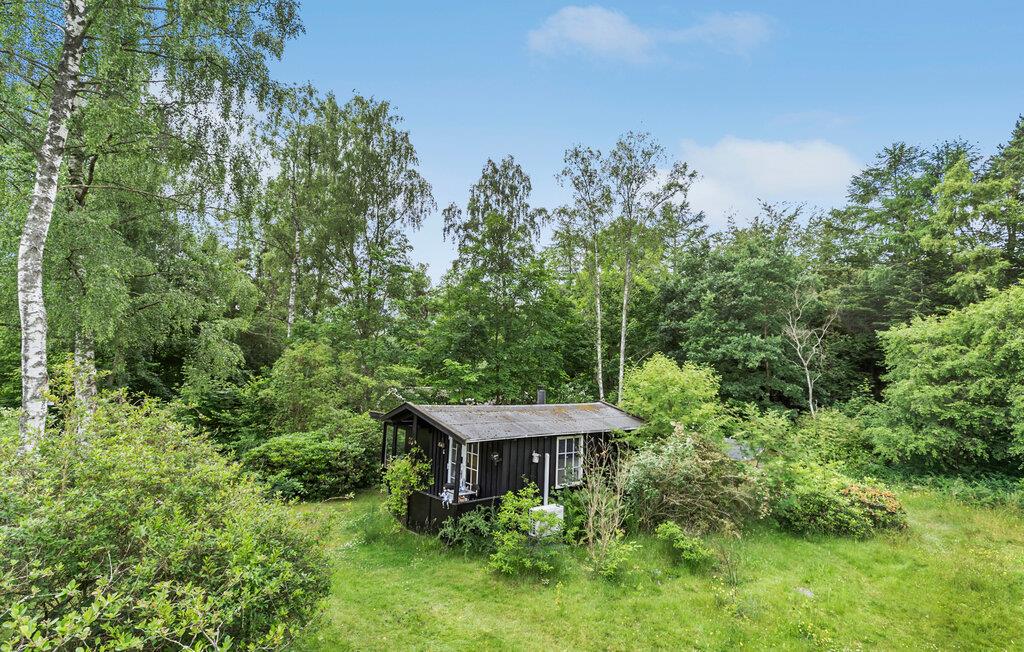 Charmerende rustikt træhus ved Hornbæk Strand, perfekt til en fredelig ferie i naturskønne omgivelser.