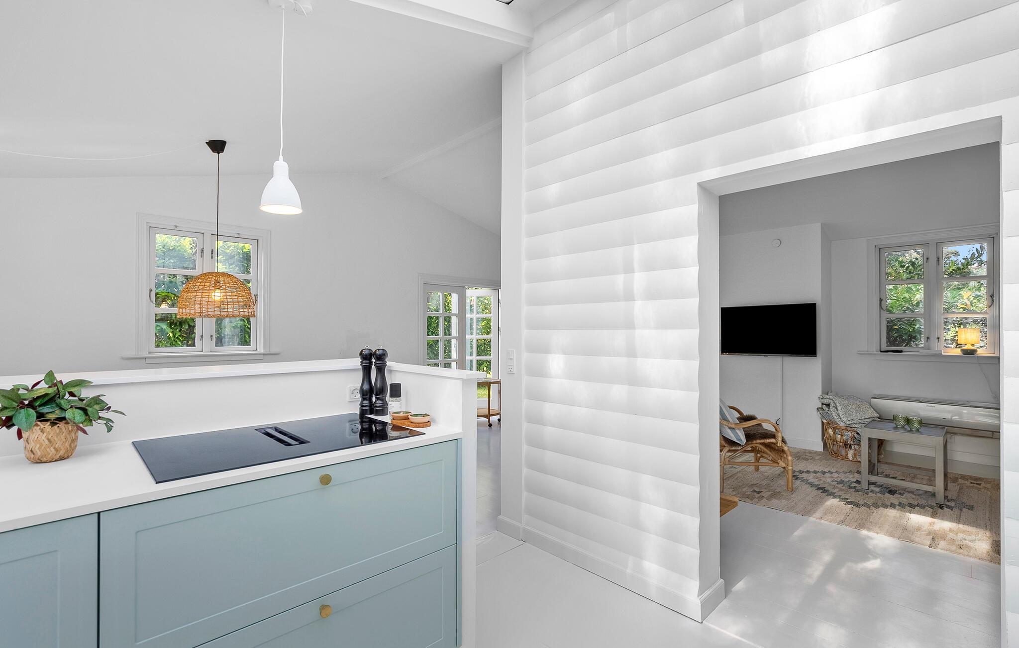 Dette smukt beliggende hus gør det nemt at slappe af og genoplade batterierne. Sprossevinduerne giver masser af lys, en åben atmosfære og en følelse af forbindelse til naturen. Lyt til jeres yndlingspodcast, eller se en interessant film i den behagelige sofa, inden I tilbereder lækre måltider i det moderne køkken.