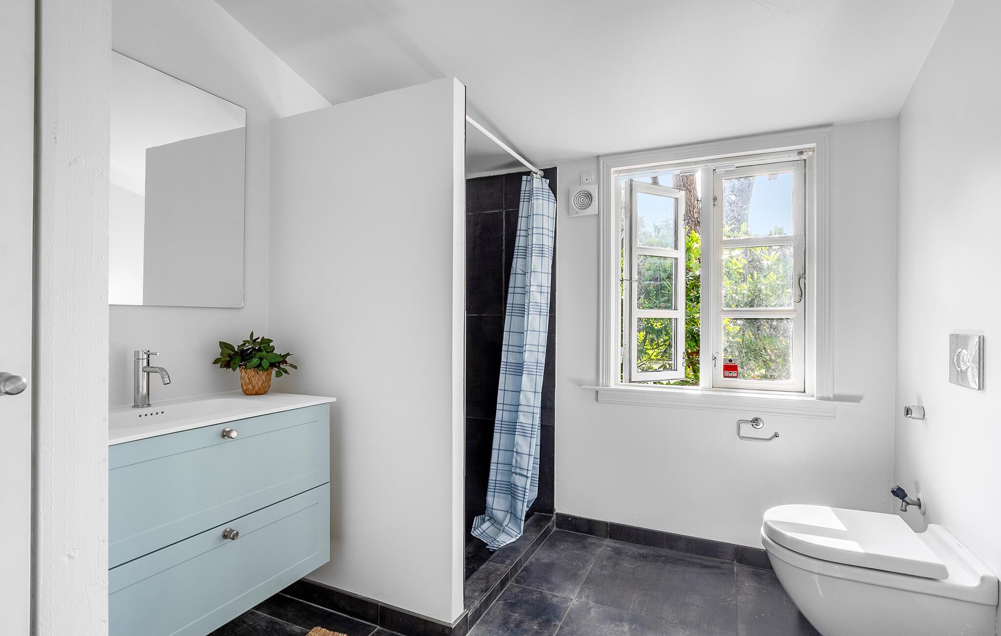 Badeværelse (nr. 1) - WC. Varmt og koldt vand. Bruser