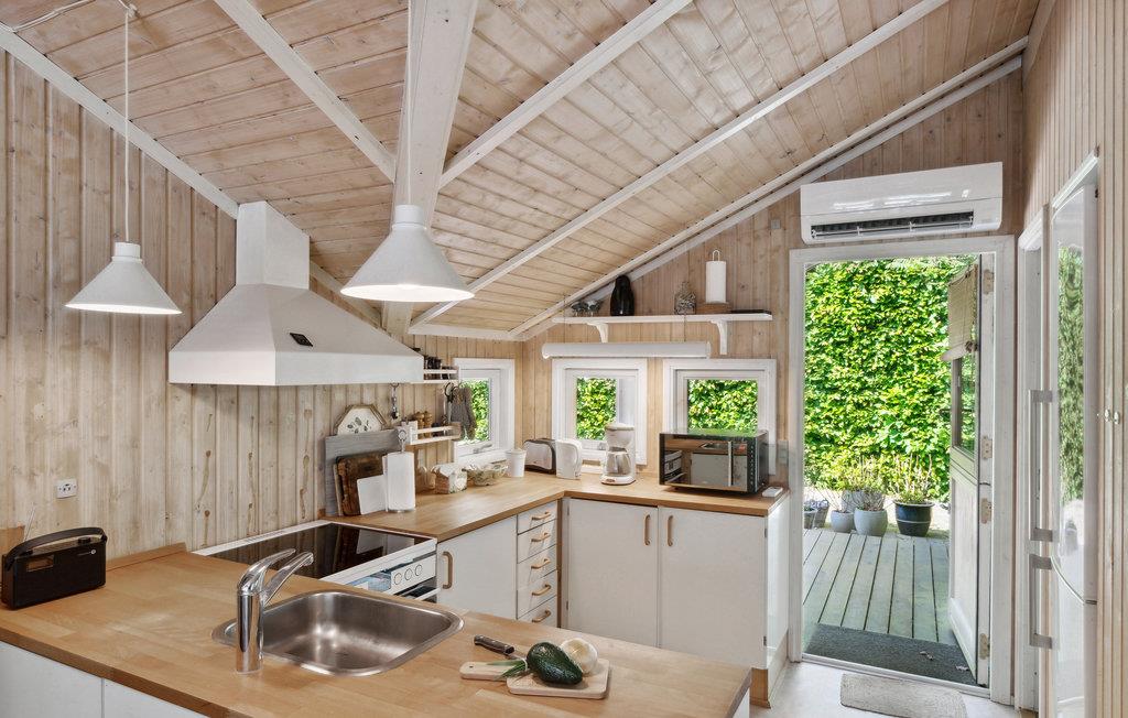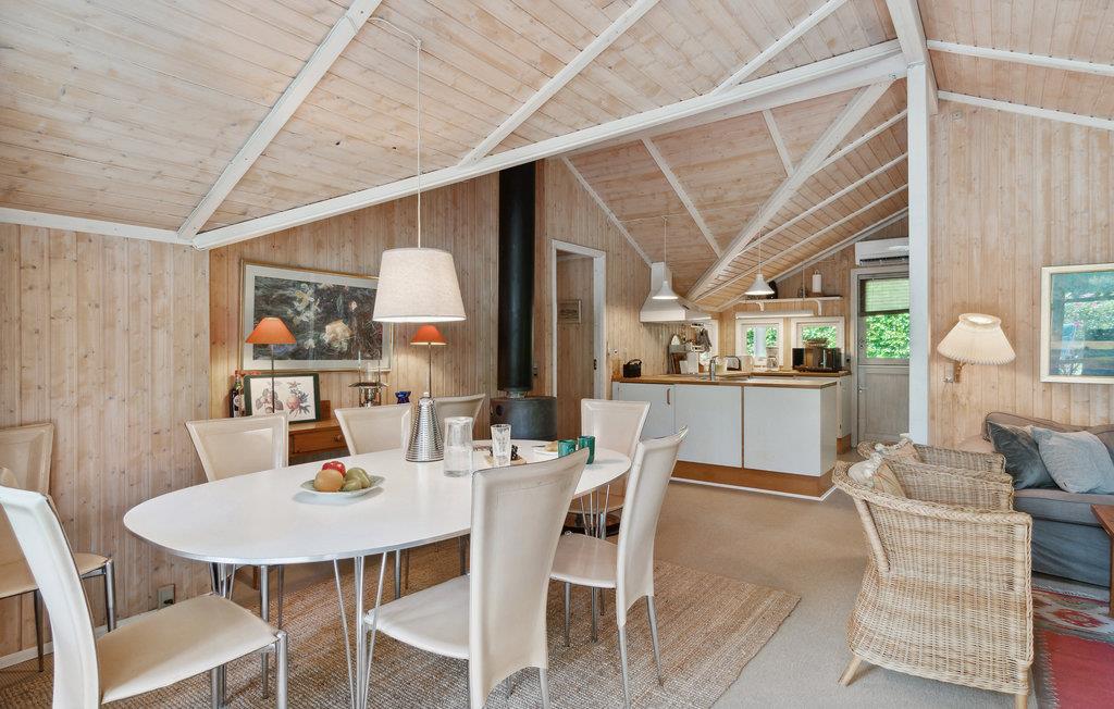 Tag med familien til Sjællands nordkyst og hold en afslappende ferie i dette hyggelige feriehus. De lyse trævægge og de høje, lyse lofter bidrager til en beroligende atmosfære, hvor I vil føle jer hjemme. Hyg jer med spil, læg et puslespil eller se en film i stuen. Her er der kun fokus på nærvær. Nyd en lækker frokost ved spisebordet, inden I tager til stranden. Lad jeres børn tumle i haven, mens I sætter kaffe, kage, saft eller måske lidt frisk frugt frem på terrassen. I kan også lege skovtur i den dejlige have med smukke rhodondendroner. Efter aftensmaden kan I hygge jer i vildmarksbadet.