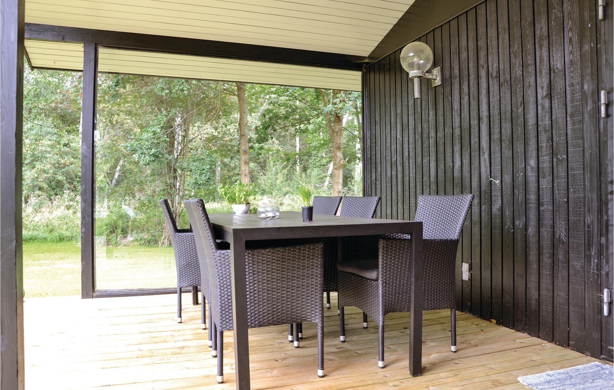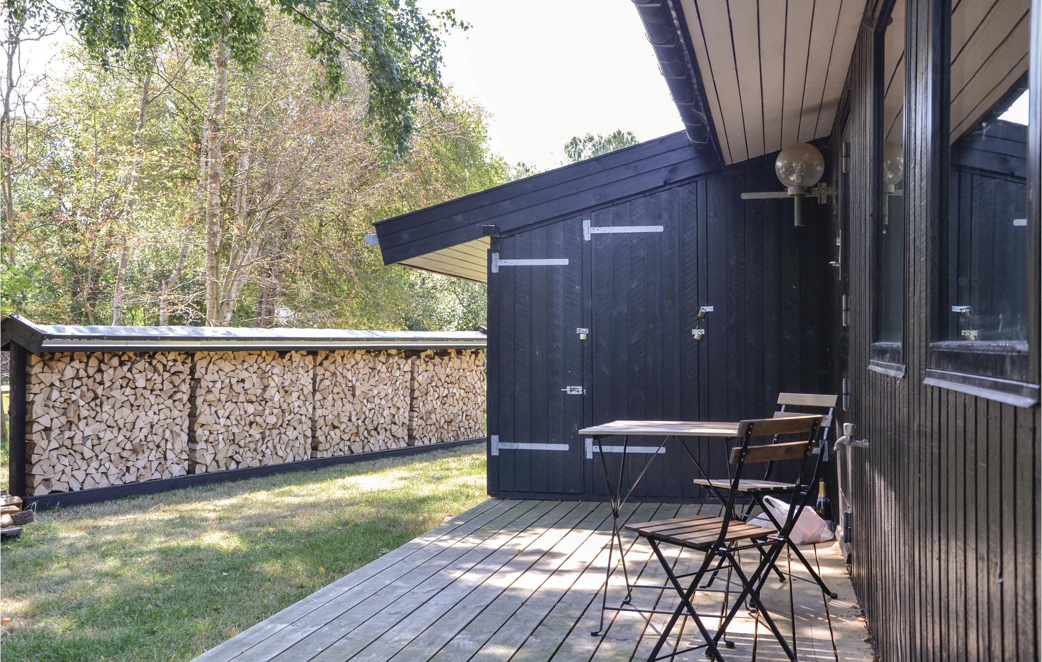 Hyggeligt feriehus i Hornbæk tæt på strand med overdækket terrasse og brændeovn, perfekt til familien.