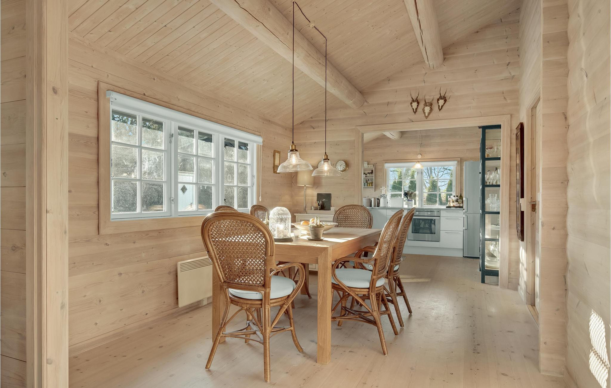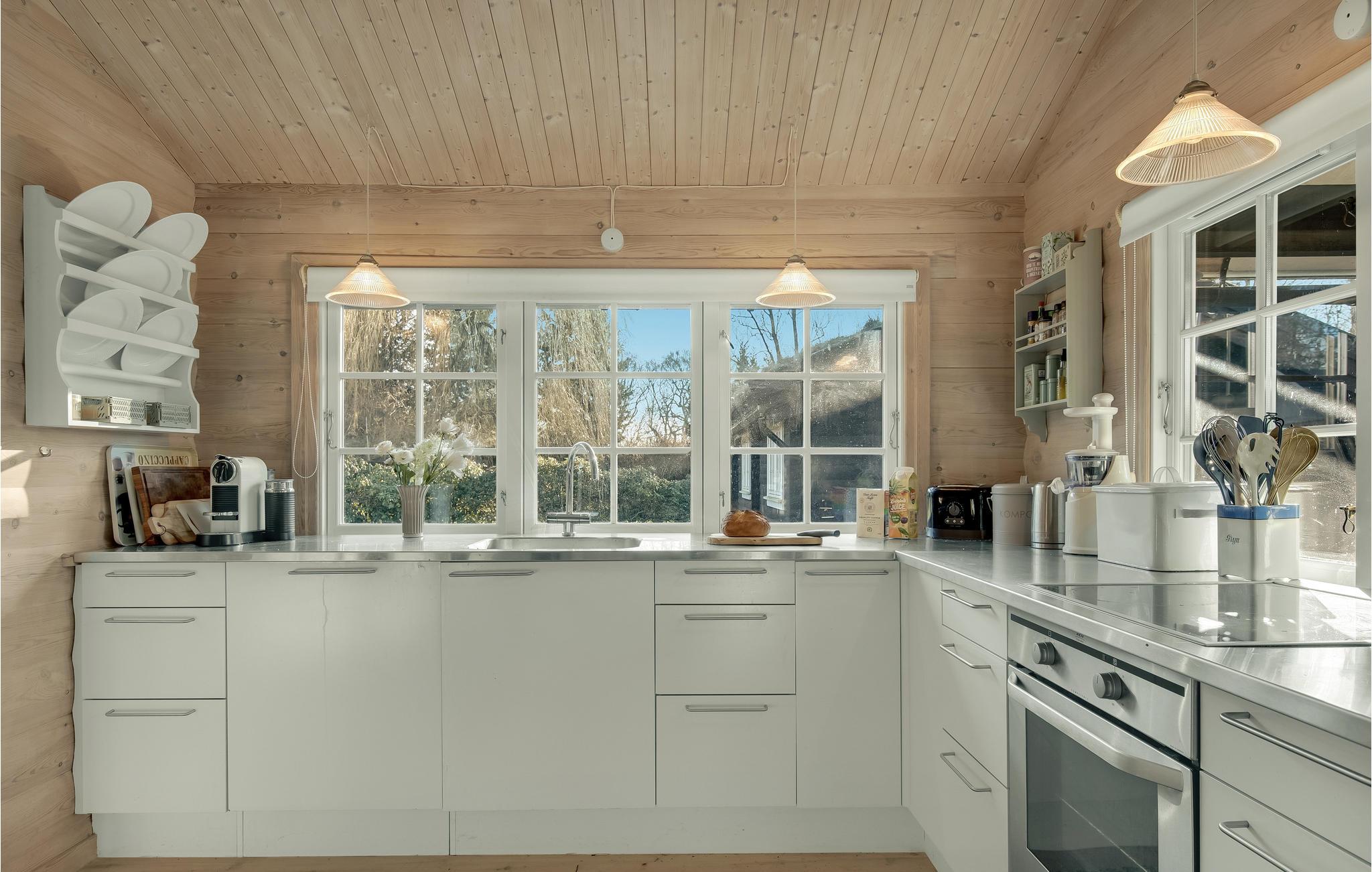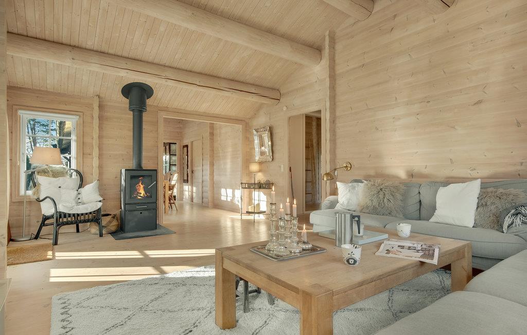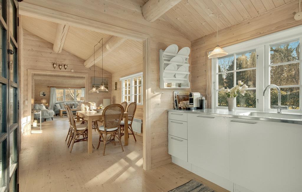 Velkommen til dette smukke og charmerende sommerhus. Her kan jeres drømme gå i opfyldelse, og I kan tage en pause fra jeres hektiske hverdag. Tag familie eller venner med på ferie her, og I vil straks føle jer hjemme i det smagfulde og lyse træhus. Fremtryl jeres yndlingsretter sammen i køkkenet, spis eller spil brætspil ved spisebordet og nyd komforten i sofaerne i høj kvalitet, mens ilden knitrer i brændeovnen. Start jeres morgen med en dampende kop kaffe på de komfortable loungemøbler og planlæg dagens aktiviteter og udflugter over morgenmaden. Mens I rydder op efter morgenmaden, kan jeres børn hoppe på trampolinen og løbe rundt i haven.