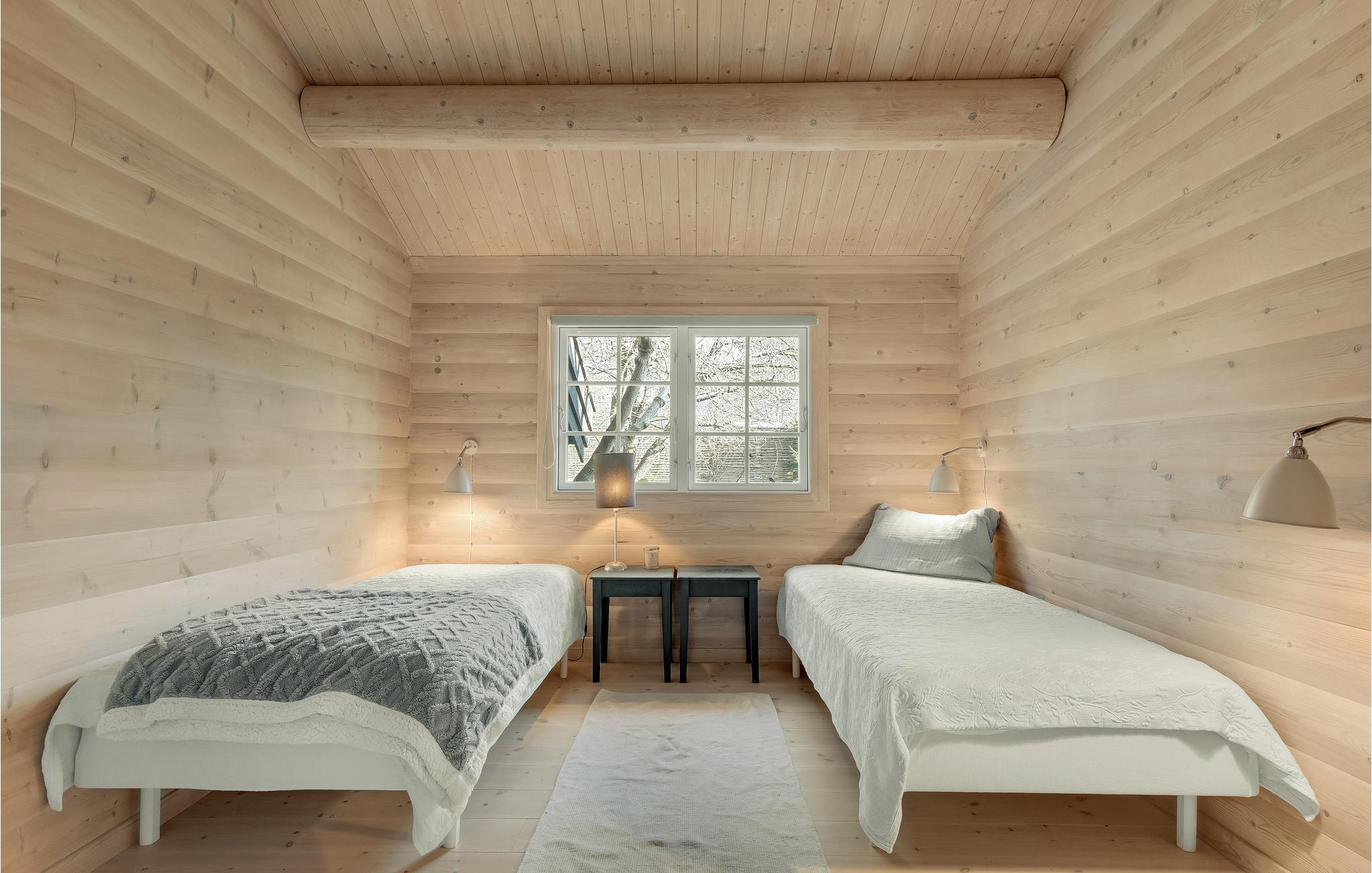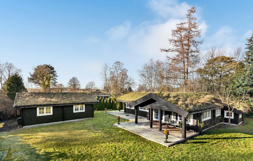 Stilfuld bjælkehytte nær Hornbæk Strand med luksuriøse faciliteter og hyggelig atmosfære.
