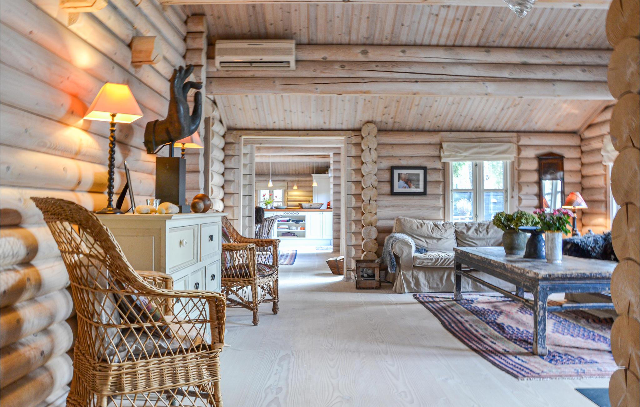 Feriehuset er smagfuldt indrettet med sans for detaljerne og brændeovnene spreder en behagelig varme i opholdsstuen og køkkenalrummet. Der er loft til kip i alle rum, og de smukke bjælker er med til at skabe en ekstra hyggelig atmosfære. Den skønne stue ligger i forlængelse af det veludstyrede køkken med en dejlig spiseplads. I huset er der 4 gode soveværelser. Nyd ferien på den dejlige terrasse, hvor træerne giver pletvis skygge gennem dagen. Grunden ligger direkte ud til "Rusland", hvor I finder smukke vandrestier og Rudolph Tegners museum.