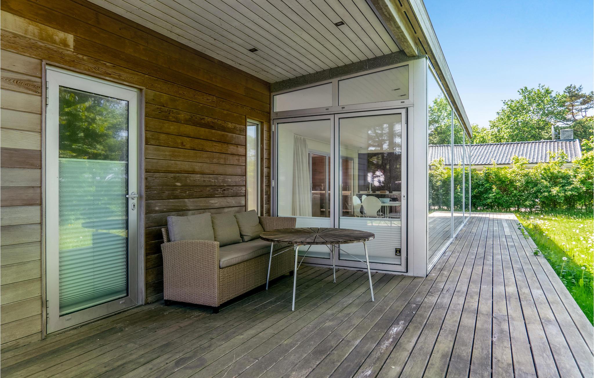 Feriehuset er lyst og venligt, og er indrettet med et stort vinduesparti i stuen, så fornemmelsen inde i huset er, at det går i et med naturen. Stuen er sammenhængende med køkkenet, hvorfra der er adgang til terrassen, der går hele vejen rundt om huset. Bag huset kan I sidde i læ, og her grænser huset op til et fredet område. Efter en tur på stranden, hvor I har nydt solen og måske været en tur i bølgen blå, derefter kan man nyde en sfslappet stund på terrassen . Medbring cykler og cykl en tur til Hornbæk med den hyggelige lystbådehavn, små butikker og caféer.