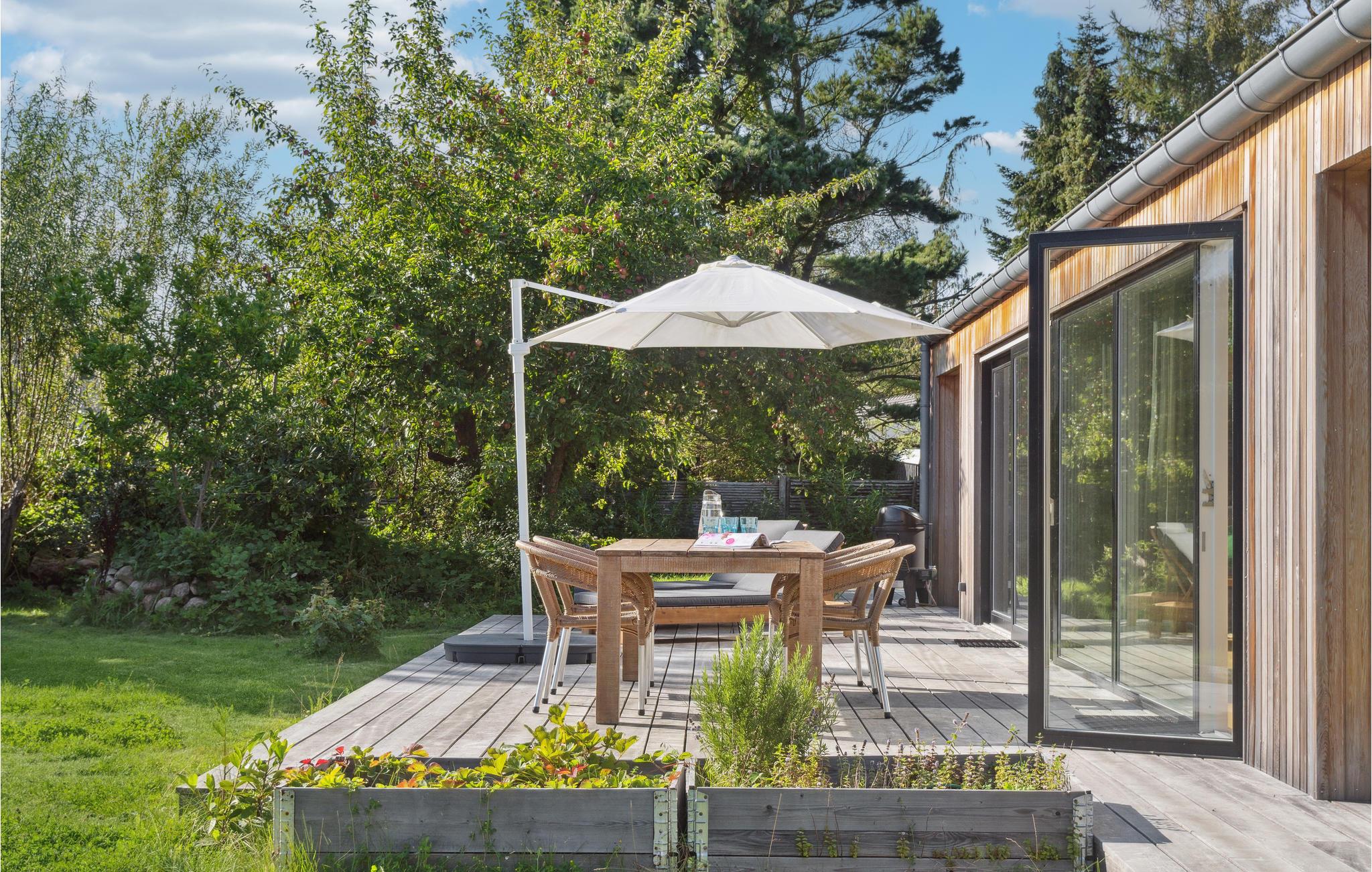 Moderne feriehus i Hornbæk med cedertræsfacade, stor have og kort afstand til strand og hyggelige aktiviteter.