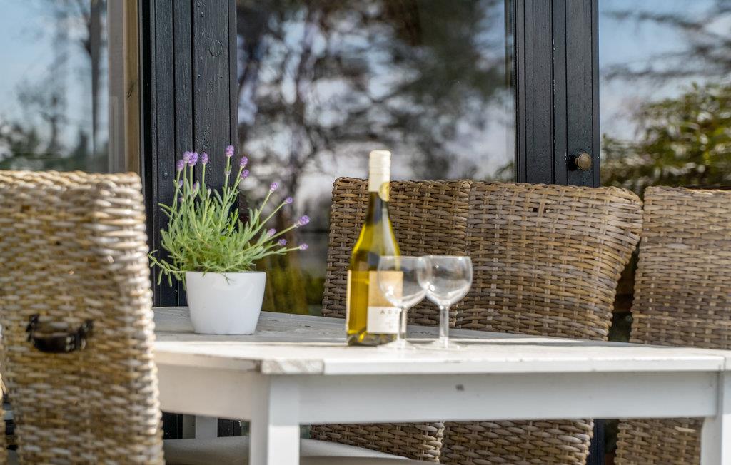 Feriestemningen er helt i top i dette fine, sorte sommerhus.