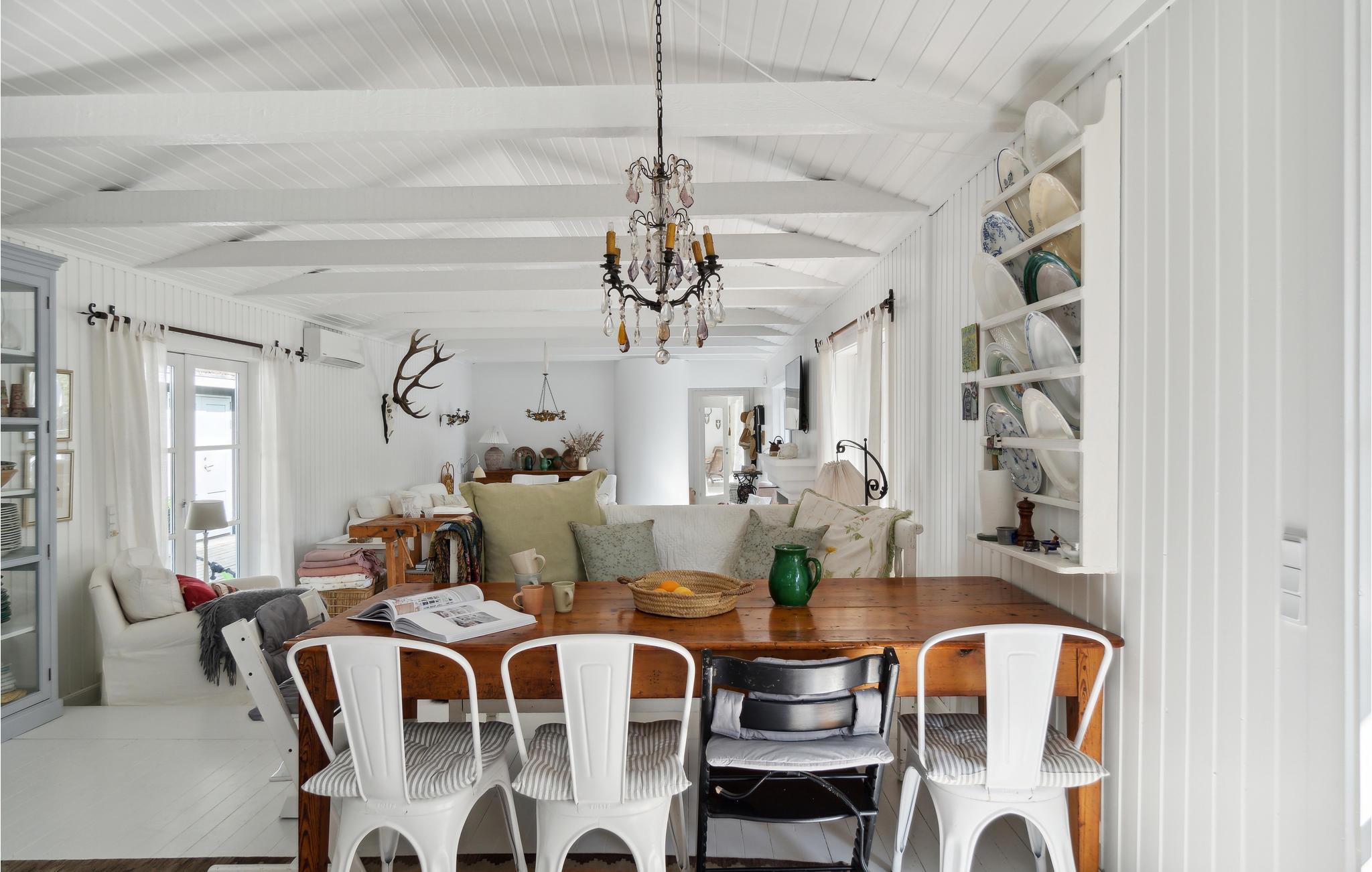 Dette børnevenlige og veludstyrede feriehus omgivet af smukke trækroner byder jer velkommen til den populære gamle kunstnerkoloni, Hornbæk. Med kvaliteten i top og hele tre annekser tilbyder huset de ideelle rammer for en skøn ferie for op til flere familier. Både indenfor og udenfor finder I en lang række gode faciliteter for store og små. Huset med loft til kip er karakteriseret ved sin romantiske hvide og lyse atmosfære, der henleder tankerne på det maleriske Hornbæks vidunderlige lys. Lav mad sammen i det store køkken og hyg jer sammen om aftenen foran pejsen. Nyd sommervejret i den frodige smukke have og badet under åben himmel. Tilbring vidunderlige timer på de mange skønne terrasser med solbadning, hyggesnak, lækre familiemåltider, en god bog, sudoku og meget mere. Her er der plads til det hele! For de små er haven også et paradis med uanede muligheder for leg. Her venter velvære, idyl og ro. Efter en kort gåtur kommer I til den dejlige sandstrand, hvor I kan springe ud i Kattegats bølger og lege i sandet med jeres børn.