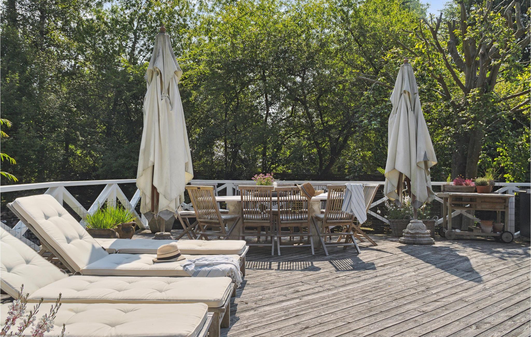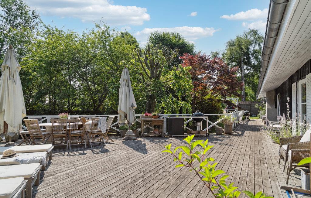 Rummeligt feriehus i Hornbæk med store terrasser, have og tæt på sandstrand, perfekt til familier og venner.