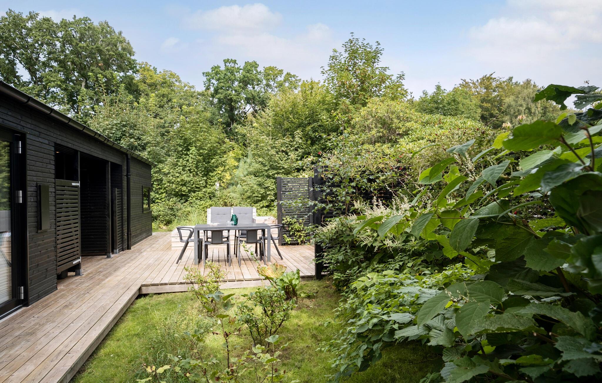 Moderne sommerhus ved Hornbæk Strand med spabad, stor terrasse og kort afstand til hav og by.