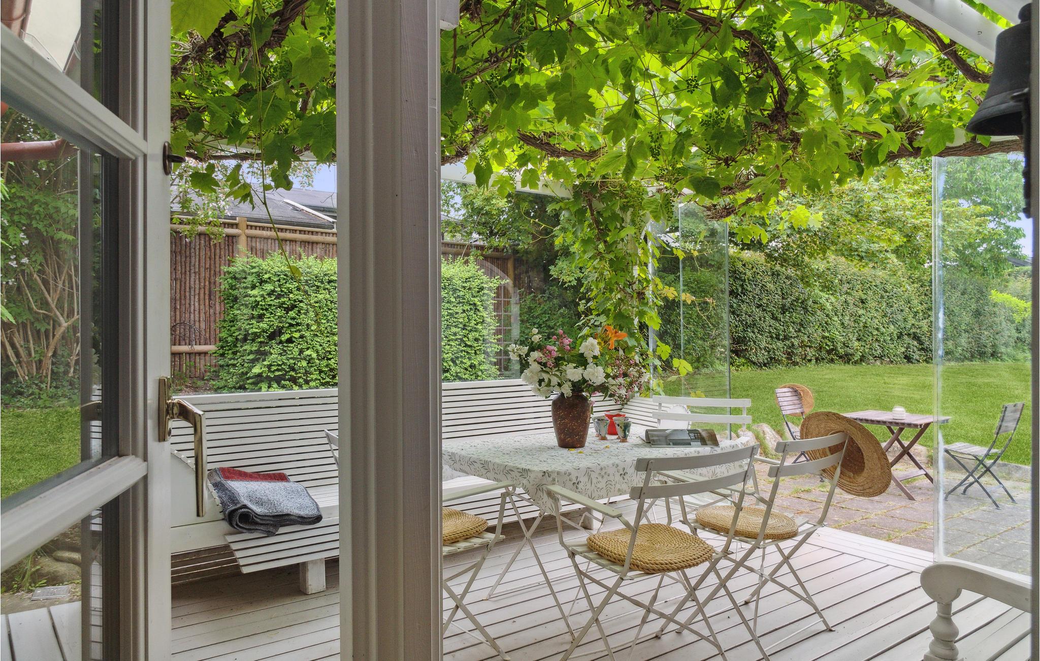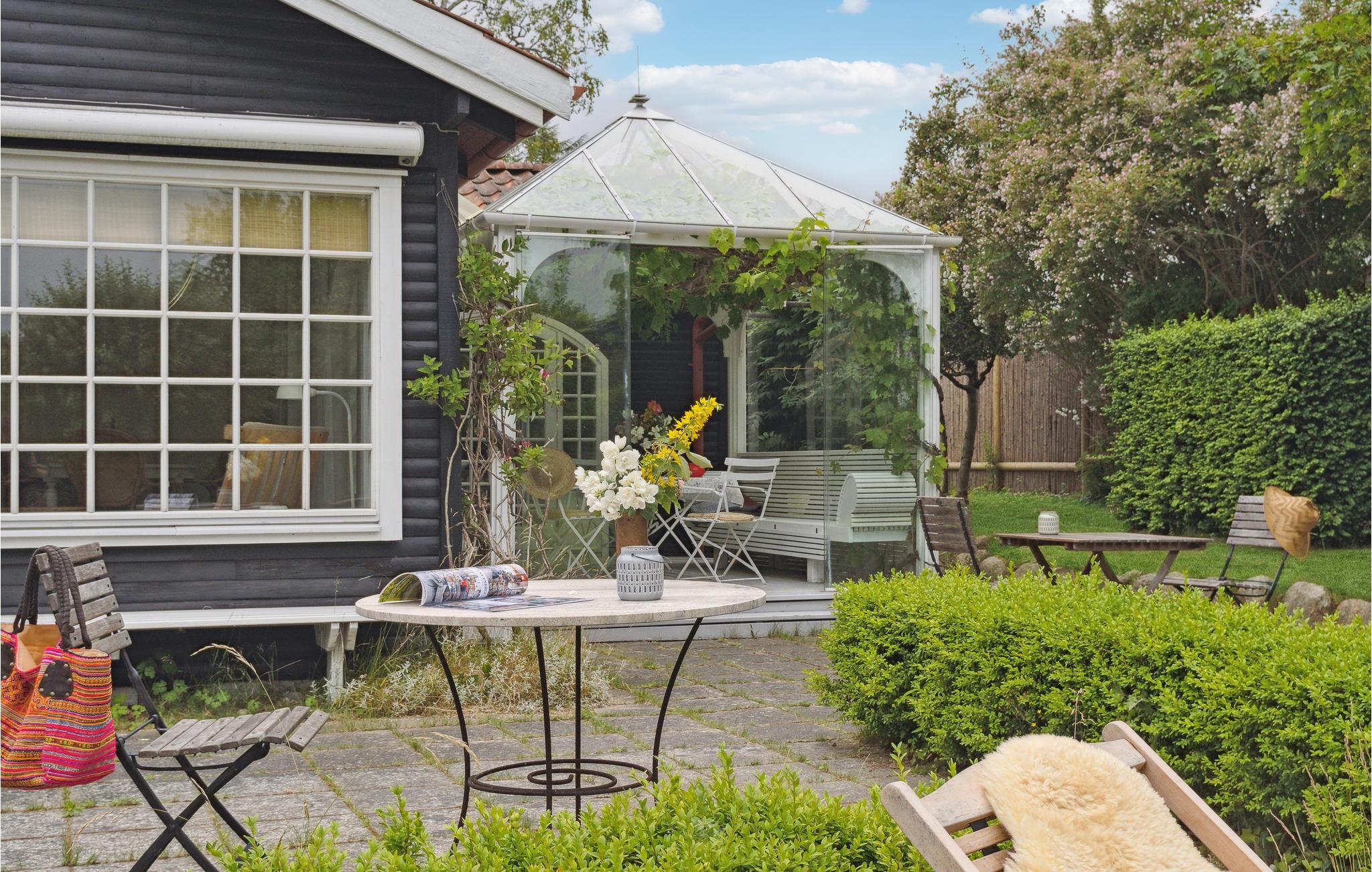 Dette smukke træhus med en helt særlig glaspavillon i haven byder velkommen til Den Danske Riviera.