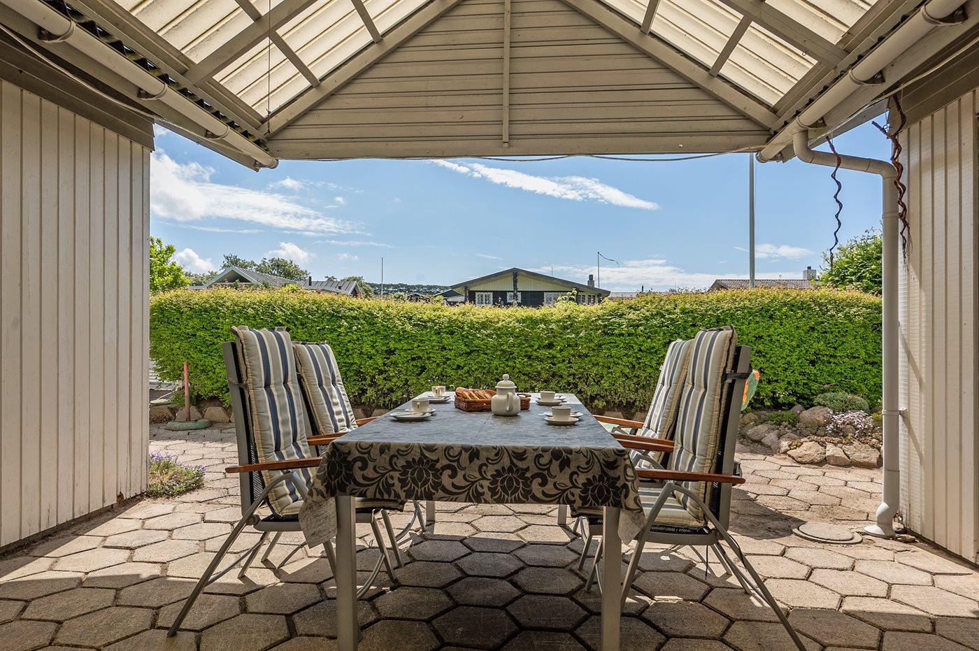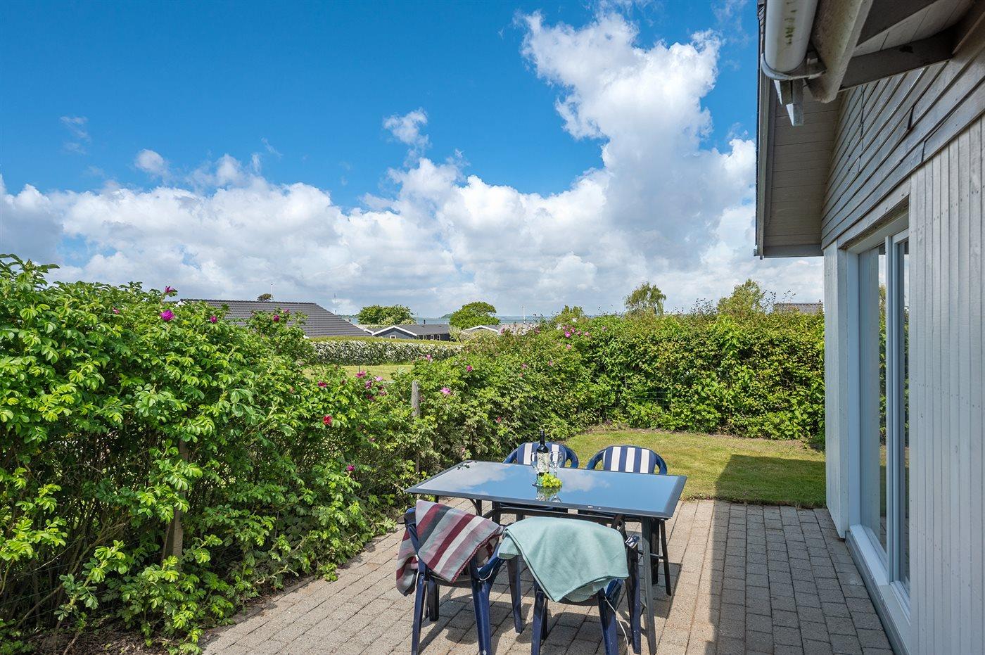 Ferieboligen er beliggende på en 899 m² stor havegrund. Der er 250 m til havet. Nærmeste forretning er beliggende i en afstand af 3500 m. Til ferieboligen hører 90 m² terrasseareal. Desuden er der 20 m² overdækket terrasse. Der er redskabsrum. Grill til rådighed. Parkering ved ferieboligen.
