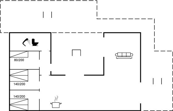 Der er i alt 3 soveværelser. Sovepladserne fordeler sig på: 4 sovepladser i dobbeltsenge. 1 soveplads i enkeltseng.